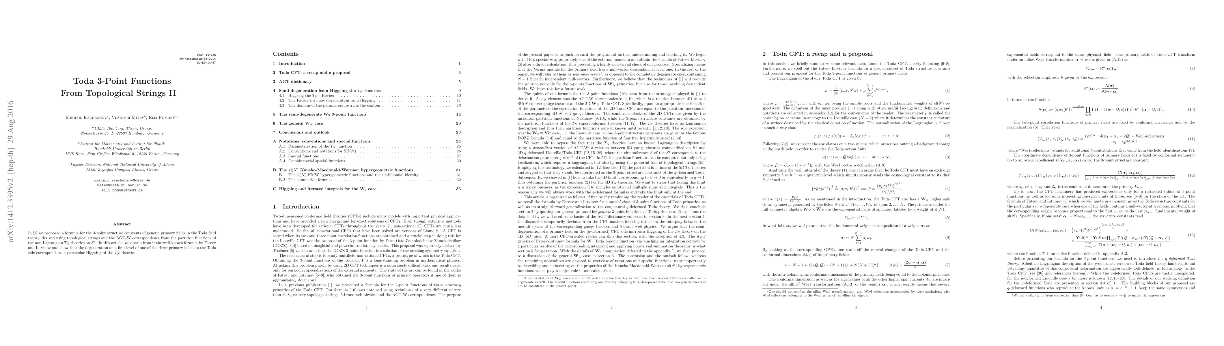 This paper extends previous work on Toda field theory's 3-point structure constants, derived via topological strings and the AGT-W correspondence. It demonstrates the correspondence between Toda's semi-degeneration of primary fields and specific Higgsing in $T_N$ theories, ultimately deriving the Fateev-Litvinov formula.