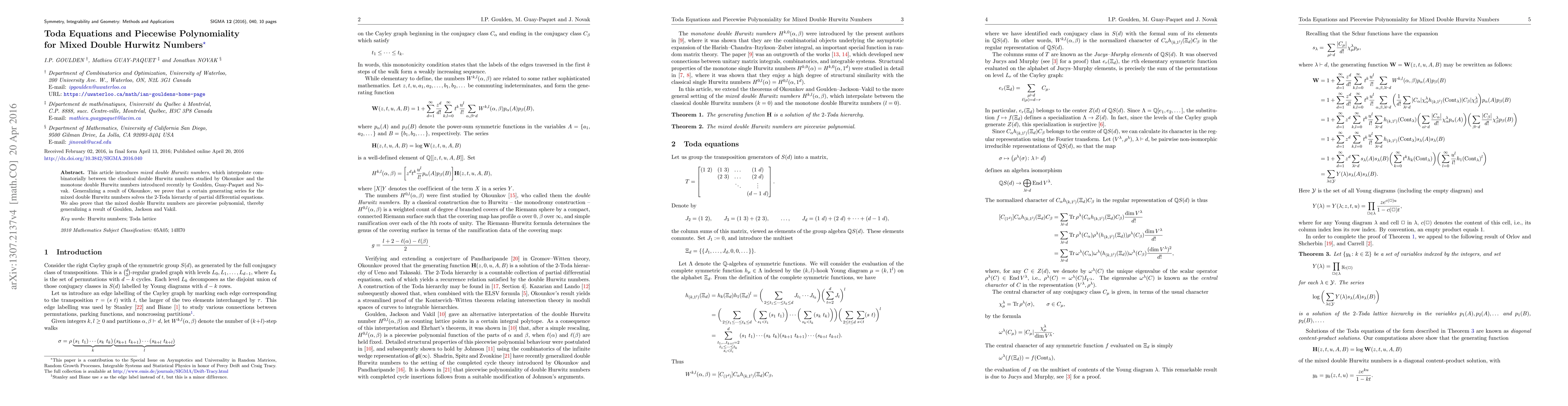 This article introduces mixed double Hurwitz numbers, which interpolate combinatorially between the classical double Hurwitz numbers studied by Okounkov and the monotone double Hurwitz numbers introduced recently by Goulden, Guay-Paquet and Novak. Generalizing a result of Okounkov, we prove that a certain generating series for the mixed double Hurwitz numbers solves the 2-Toda hierarchy of partial differential equations. We also prove that the mixed double Hurwitz numbers are piecewise polynomial, thereby generalizing a result of Goulden, Jackson and Vakil.
