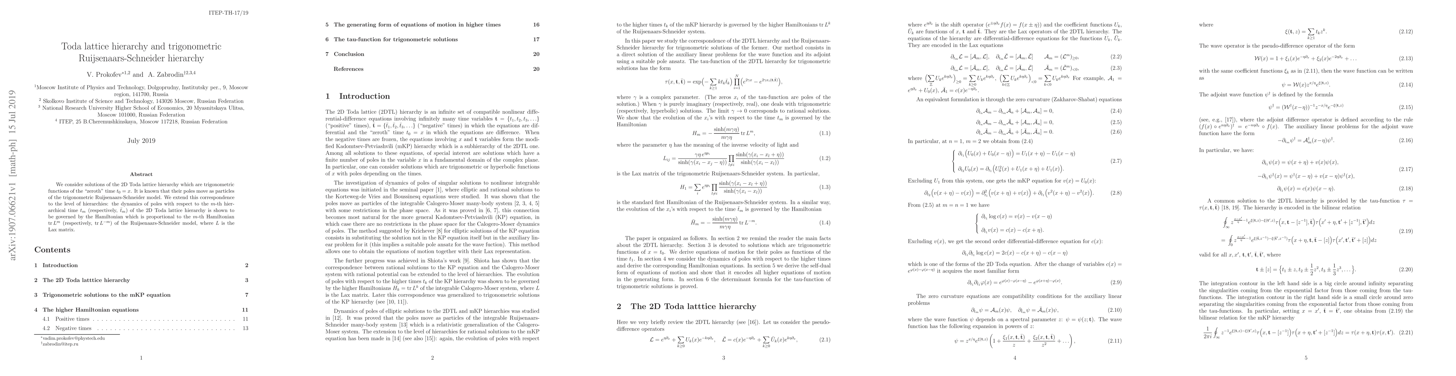 This paper investigates the relationship between solutions of the 2D Toda lattice hierarchy and the trigonometric Ruijsenaars-Schneider model, demonstrating that poles' dynamics in the Toda hierarchy correspond to the dynamics of particles in the Ruijsenaars-Schneider model, extended to the level of hierarchies.