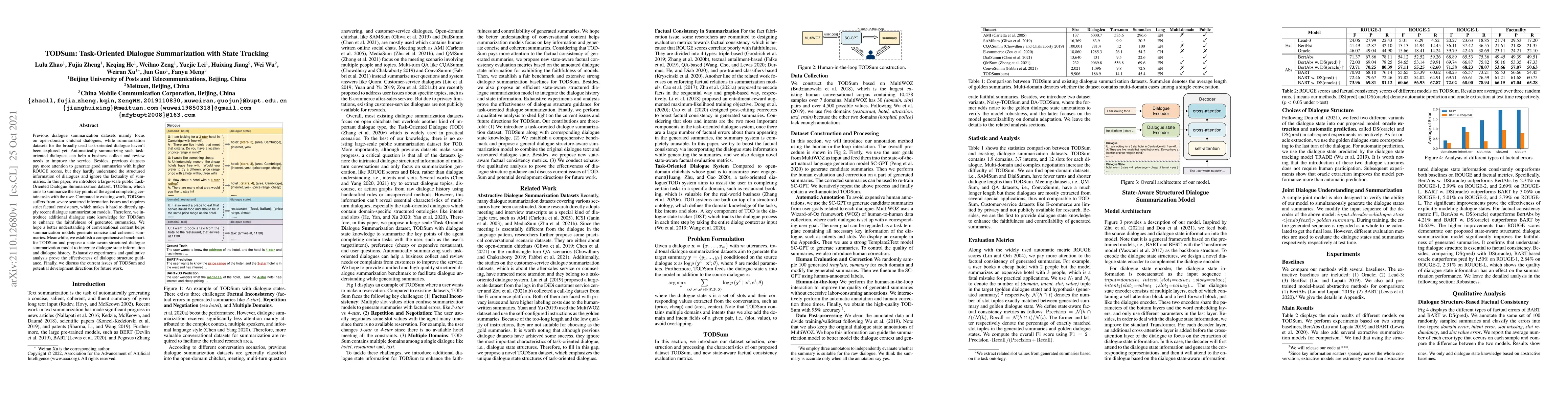 This paper introduces TODSum, a new dataset for summarizing task-oriented dialogues, addressing the lack of such datasets. It aims to improve summarization models by incorporating dialogue state knowledge to ensure factual consistency and coherence, establishing a benchmark and proposing a state-aware summarization model.