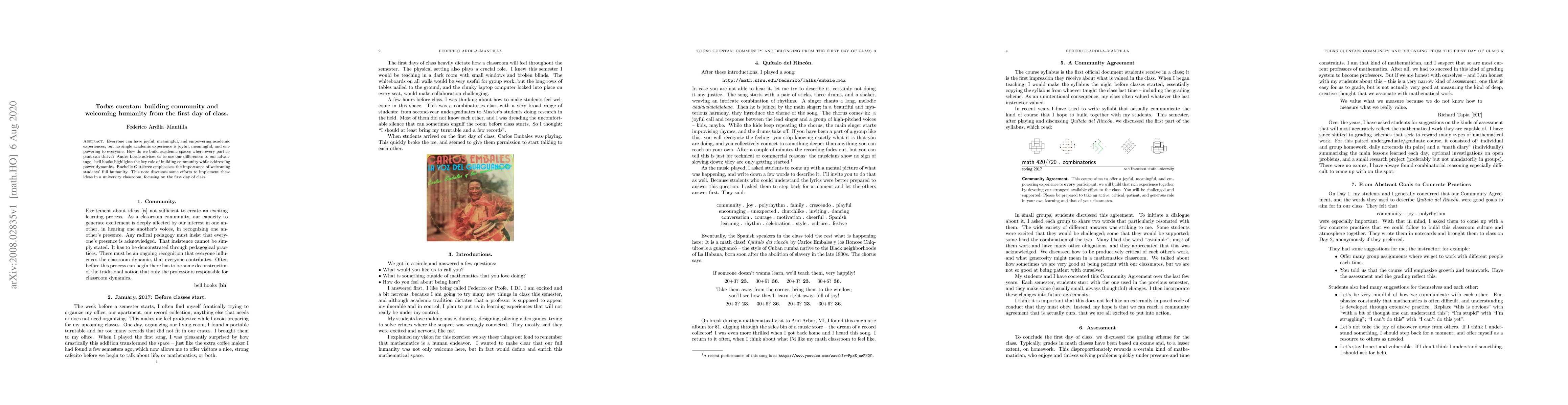 Everyone can have joyful, meaningful, and empowering academic experiences; but no single academic experience is joyful, meaningful, and empowering to everyone. How do we build academic spaces where every participant can thrive? Audre Lorde advises us to use our differences to our advantage. bell hooks highlights the key role of building community while addressing power dynamics. Rochelle Guti\'errez emphasizes the importance of welcoming students' full humanity. This note discusses some efforts to implement these ideas in a university classroom, focusing on the first day of class.