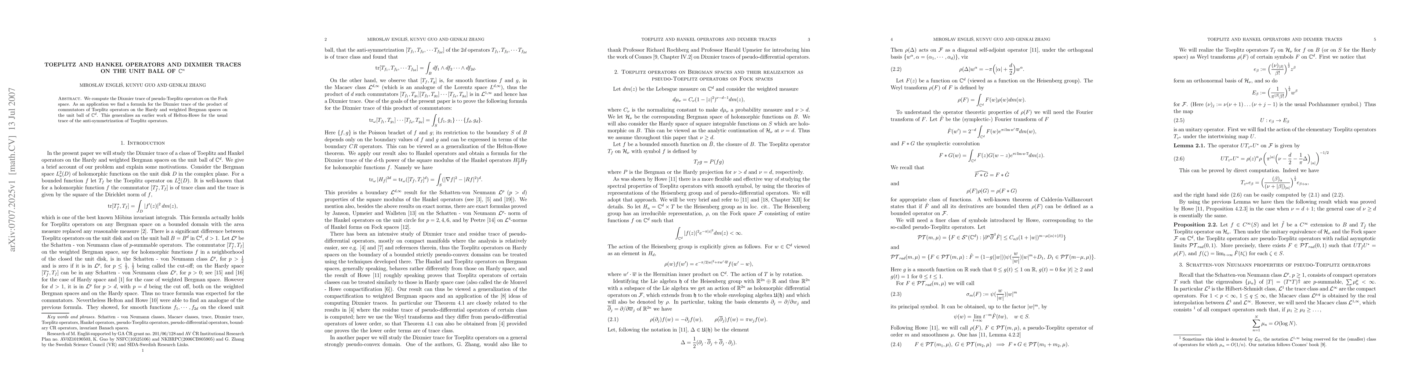 This paper computes the Dixmier trace of pseudo-Toeplitz operators on the Fock space, and derives a formula for the Dixmier trace of the product of commutators of Toeplitz operators on Hardy and weighted Bergman spaces on the unit ball of \(\mathbb{C}^d\), generalizing previous results for the usual trace.
