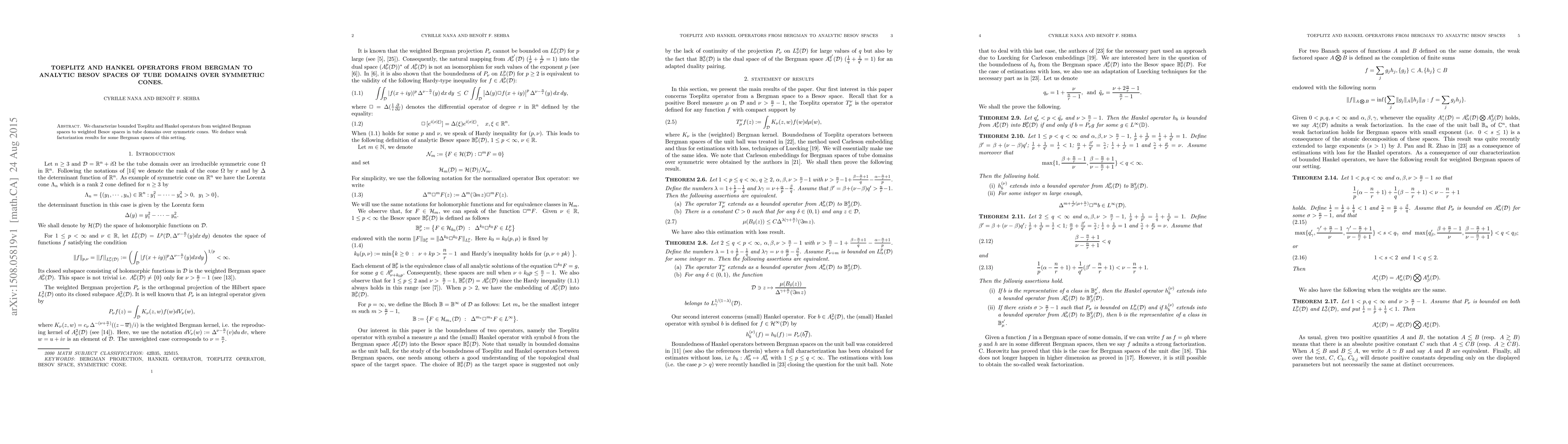 Summary: This paper characterizes bounded Toeplitz and Hankel operators mapping from weighted Bergman spaces to weighted Besov spaces in tube domains over symmetric cones, and establishes weak factorization results for certain Bergman spaces in this context.