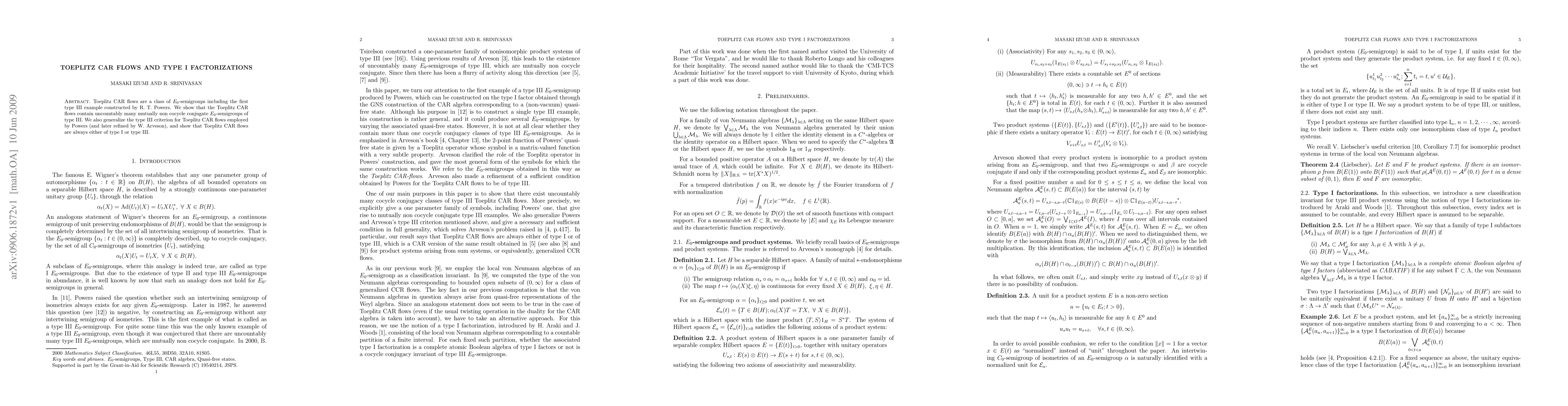 This paper explores Toeplitz CAR flows, a class of E_0-semigroups, revealing uncountably many mutually non cocycle conjugate E_0-semigroups of type III within them. It also generalizes the type III criterion for these flows and concludes that they are always either of type I or type III.