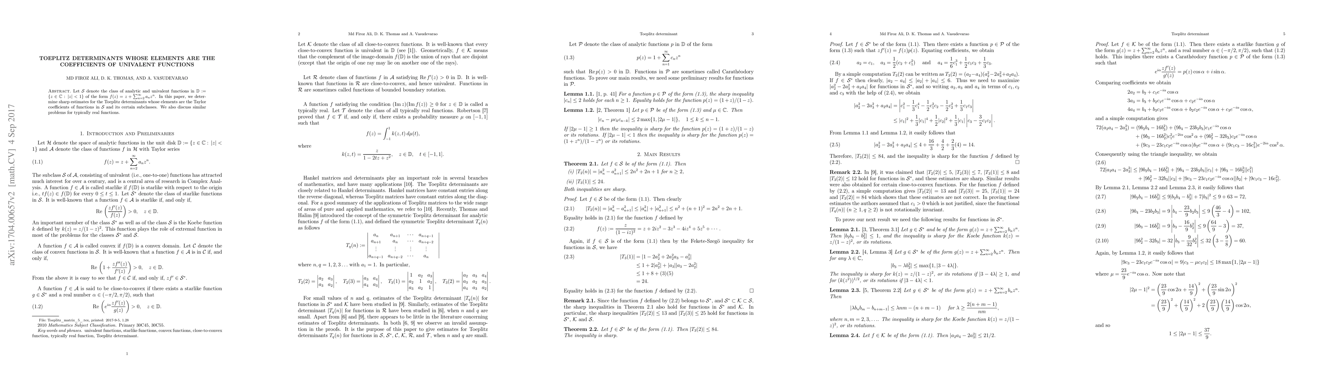 This paper investigates sharp estimates for Toeplitz determinants derived from the Taylor coefficients of univalent functions in the unit disk, focusing on the class $\mathcal{S}$ and its subclasses, and also explores analogous problems for typically real functions.
