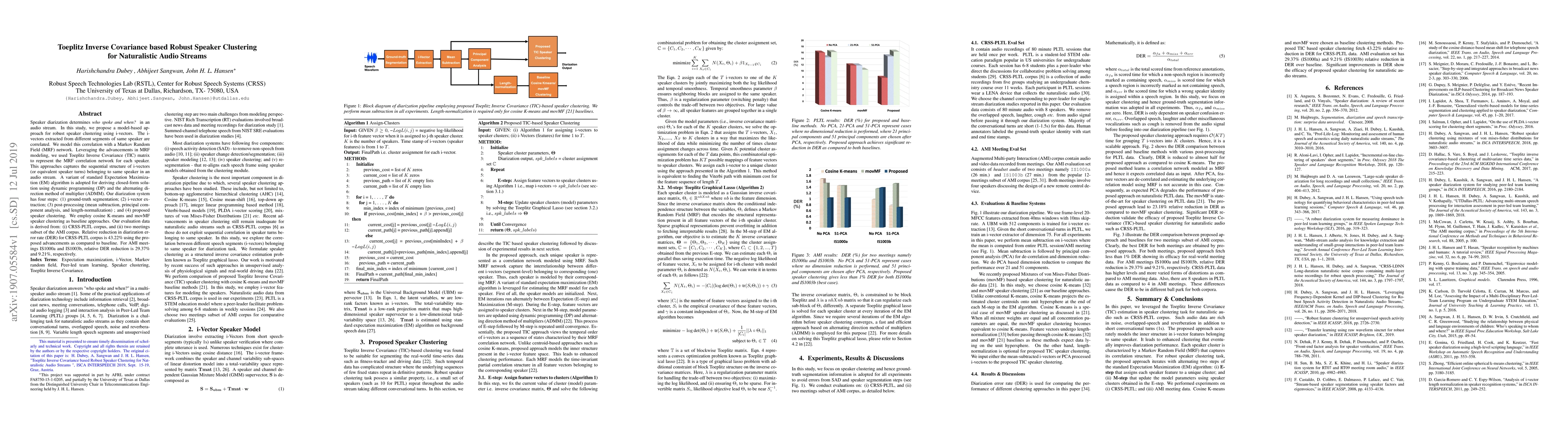 This paper proposes a robust model-based approach for speaker clustering in naturalistic audio streams using Toeplitz Inverse Covariance matrices to model correlations in i-vectors with a Markov Random Field network. The method achieves significant reductions in diarization error rates compared to baselines on multiple datasets.