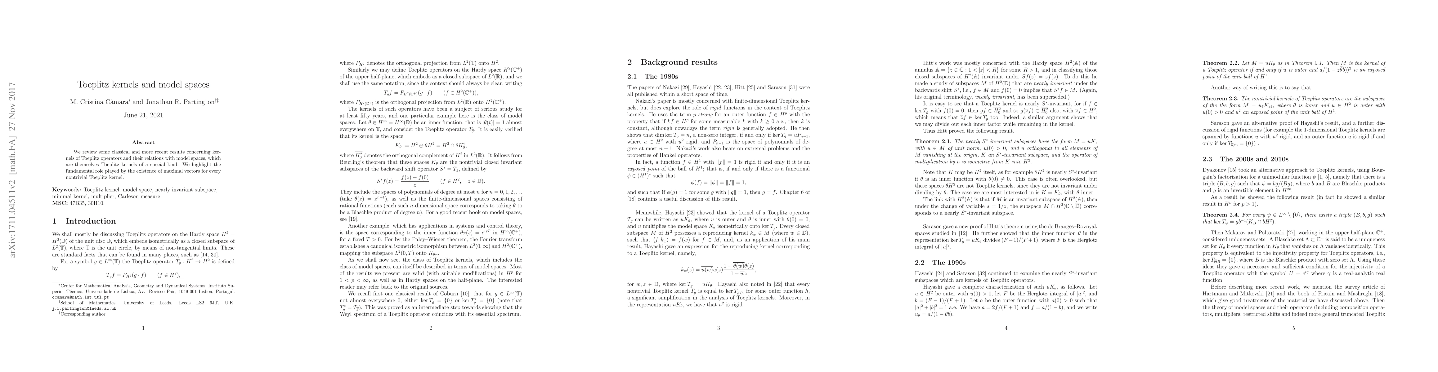 Summary: This paper reviews classical and recent findings on Toeplitz kernels and their connections to model spaces, emphasizing the crucial role of maximal vectors in nontrivial Toeplitz kernels. The study underscores the intrinsic link between Toeplitz operators and model spaces.