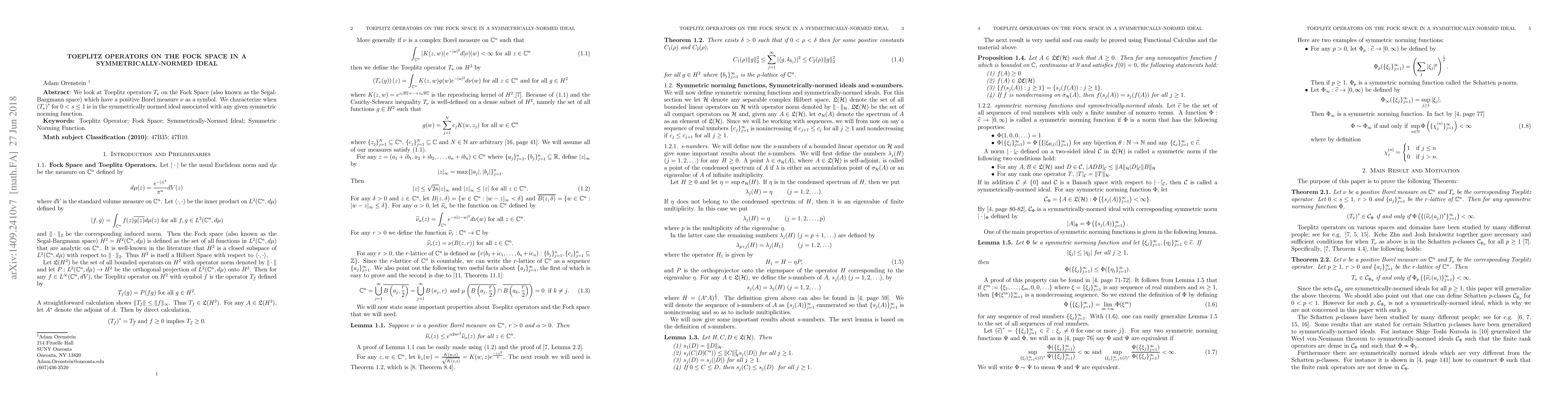 This paper examines Toeplitz operators on Fock Space with a positive Borel measure symbol, focusing on characterizing when the fractional powers of these operators belong to a symmetrically-normed ideal defined by a symmetric norming function.