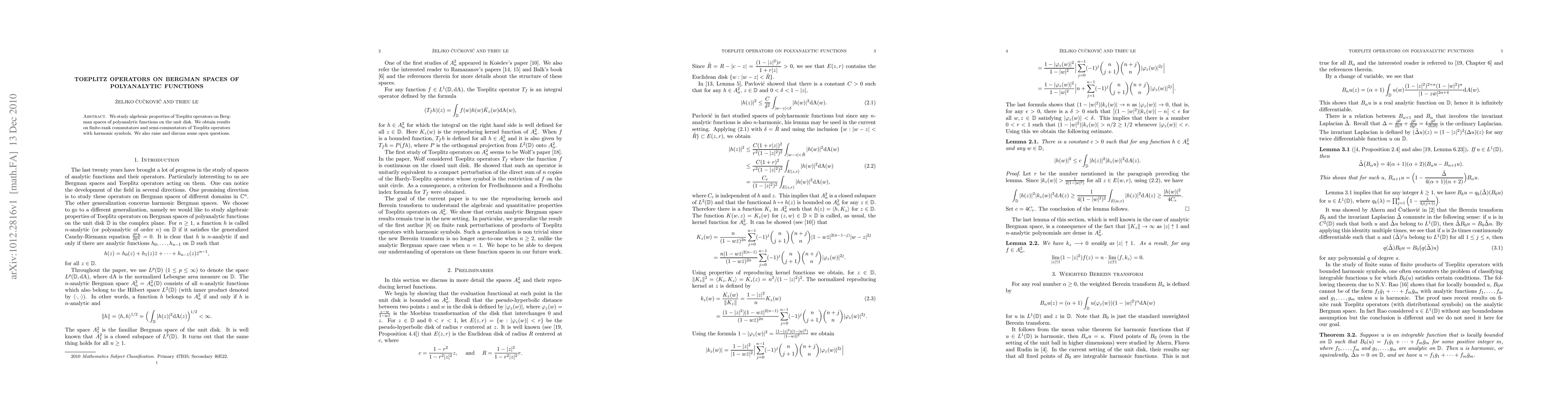 This paper investigates algebraic characteristics of Toeplitz operators on Bergman spaces for polyanalytic functions within the unit disk, focusing on finite-rank commutators and semi-commutators with harmonic symbols, and identifies several open research questions.