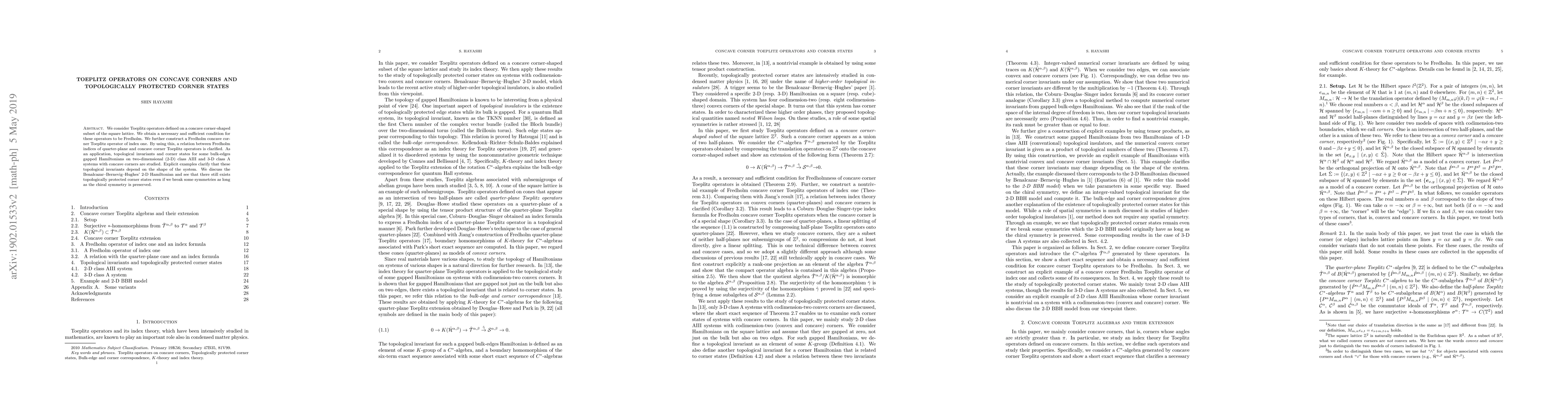 This paper studies Toeplitz operators on concave corner geometries and finds a necessary and sufficient condition for these operators to be Fredholm. It demonstrates topologically protected corner states in systems with concave corners, showing that these invariants depend on the system's shape, even when symmetries are broken as long as chiral symmetry remains.