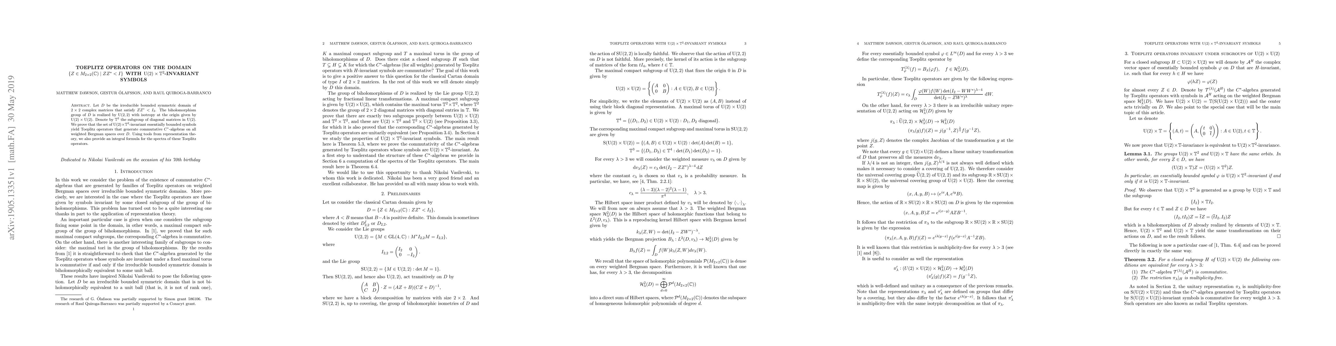 Let $D$ be the irreducible bounded symmetric domain of $2\times2$ complex matrices that satisfy $ZZ^* < I_2$. The biholomorphism group of $D$ is realized by $\mathrm{U}(2,2)$ with isotropy at the origin given by $\mathrm{U}(2)\times\mathrm{U}(2)$. Denote by $\mathbb{T}^2$ the subgroup of diagonal matrices in $\mathrm{U}(2)$. We prove that the set of $\mathrm{U}(2)\times\mathbb{T}^2$-invariant essentially bounded symbols yield Toeplitz operators that generate commutative $C^*$-algebras on all weighted Bergman spaces over $D$. Using tools from representation theory, we also provide an integral formula for the spectra of these Toeplitz operators.