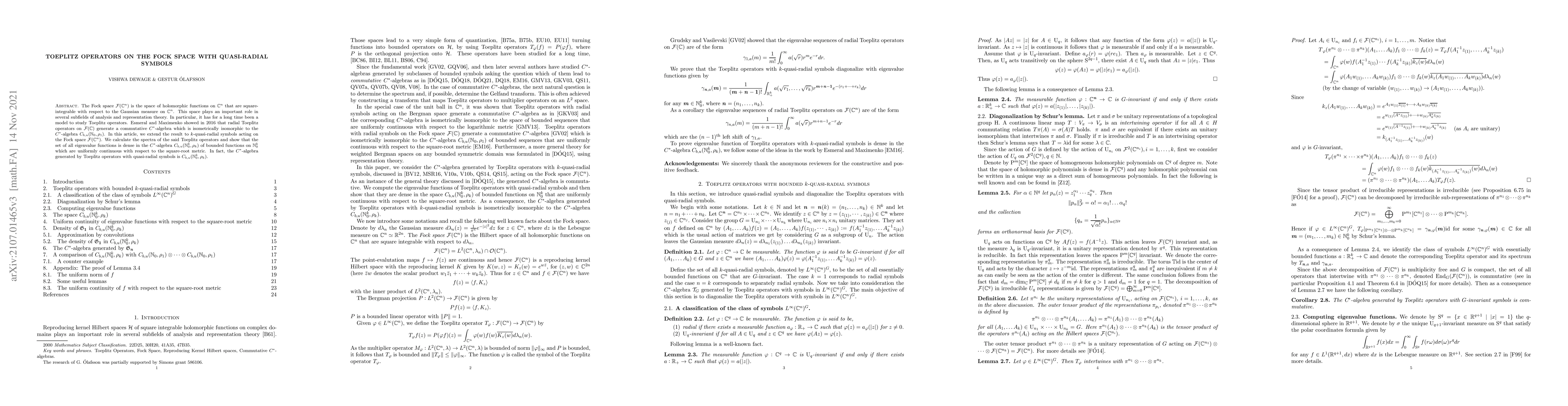 This paper extends the study of Toeplitz operators on the Fock space $\mathcal{F}(\mathbb{C}^n)$ to $k$-quasi-radial symbols, showing that the resulting Toeplitz operators generate a $C^*$-algebra isomorphic to $C_{b,u}(\mathbb{N}_0^k,\rho_k)$. The authors demonstrate that the spectra of these operators have eigenvalue functions dense in this $C^*$-algebra.