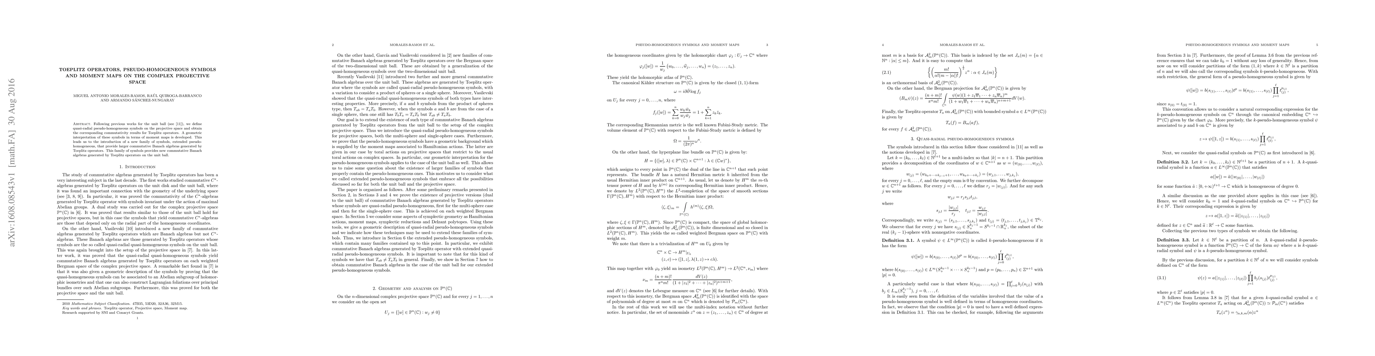 The paper defines quasi-radial pseudo-homogeneous symbols on complex projective space and derives commutativity results for corresponding Toeplitz operators. It introduces extended pseudo-homogeneous symbols to generate larger commutative Banach algebras via Toeplitz operators, extending this concept to the unit ball.