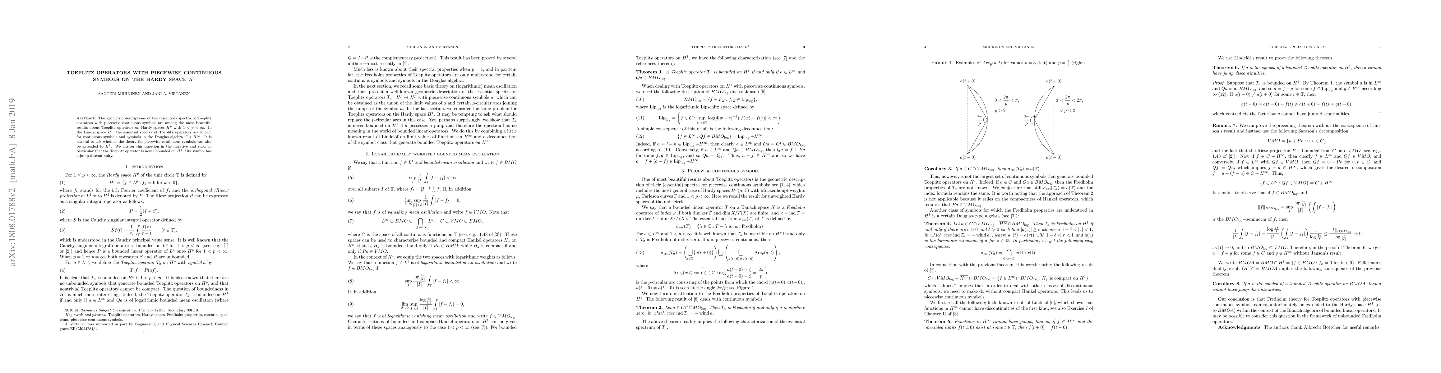 This paper investigates Toeplitz operators with piecewise continuous symbols on the Hardy space $H^1$, demonstrating that the theory for continuous symbols does not extend to piecewise continuous symbols. It concludes that Toeplitz operators with jump discontinuities in their symbols are never bounded on $H^1$.