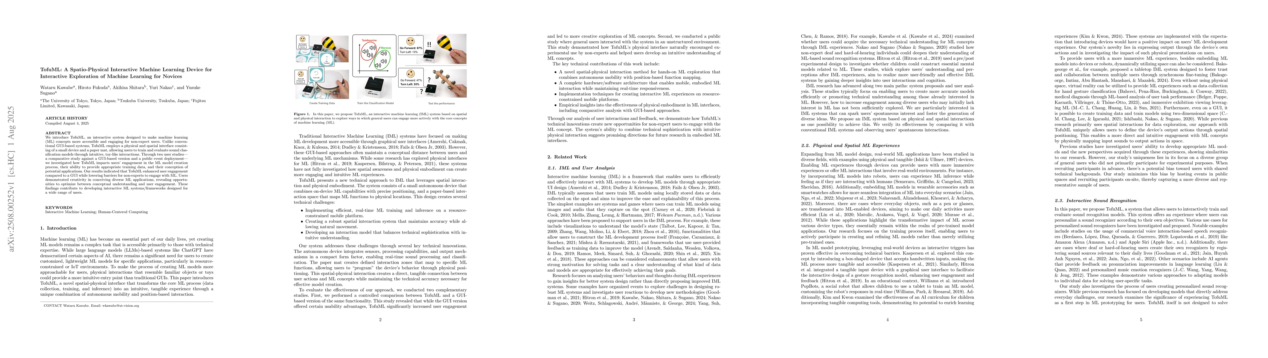 We introduce TofuML, an interactive system designed to make machine learning (ML) concepts more accessible and engaging for non-expert users. Unlike conventional GUI-based systems, TofuML employs a physical and spatial interface consisting of a small device and a paper mat, allowing users to train and evaluate sound classification models through intuitive, toy-like interactions. Through two user studies -- a comparative study against a GUI-based version and a public event deployment -- we investigated how TofuML impacts users' engagement in the ML model creation process, their ability to provide appropriate training data, and their conception of potential applications. Our results indicated that TofuML enhanced user engagement compared to a GUI while lowering barriers for non-experts to engage with ML. Users demonstrated creativity in conceiving diverse ML applications, revealing opportunities to optimize between conceptual understanding and user engagement. These findings contribute to developing interactive ML systems/frameworks designed for a wide range of users.