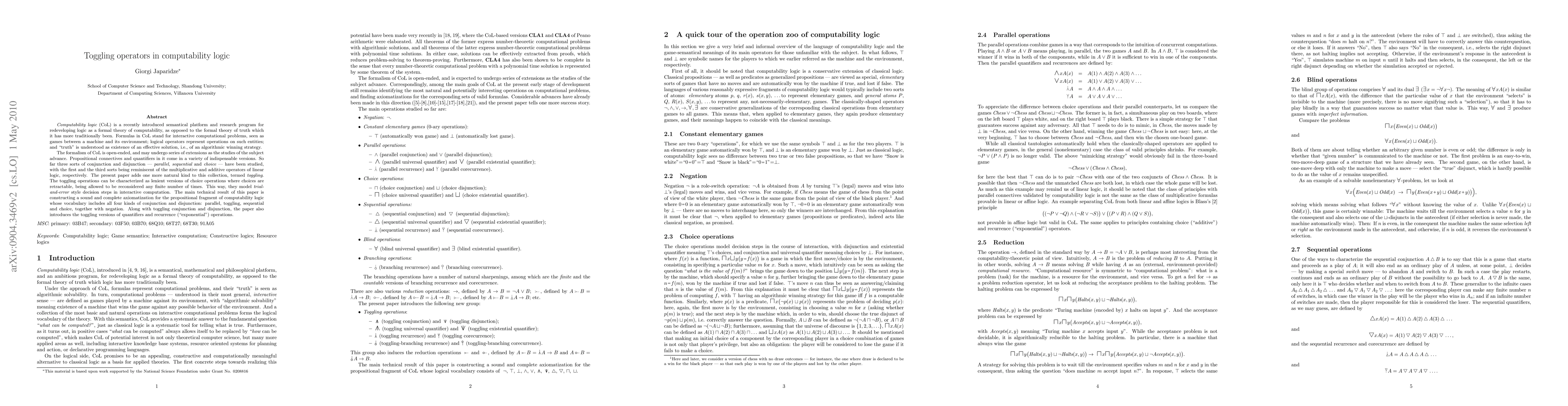 This paper introduces toggling operations in computability logic, which model trial-and-error decision steps in interactive computation. The authors provide a sound and complete axiomatization for the propositional fragment of computability logic that includes parallel, toggling, sequential, and choice conjunctions and disjunctions, along with toggling quantifiers and recurrence operations.