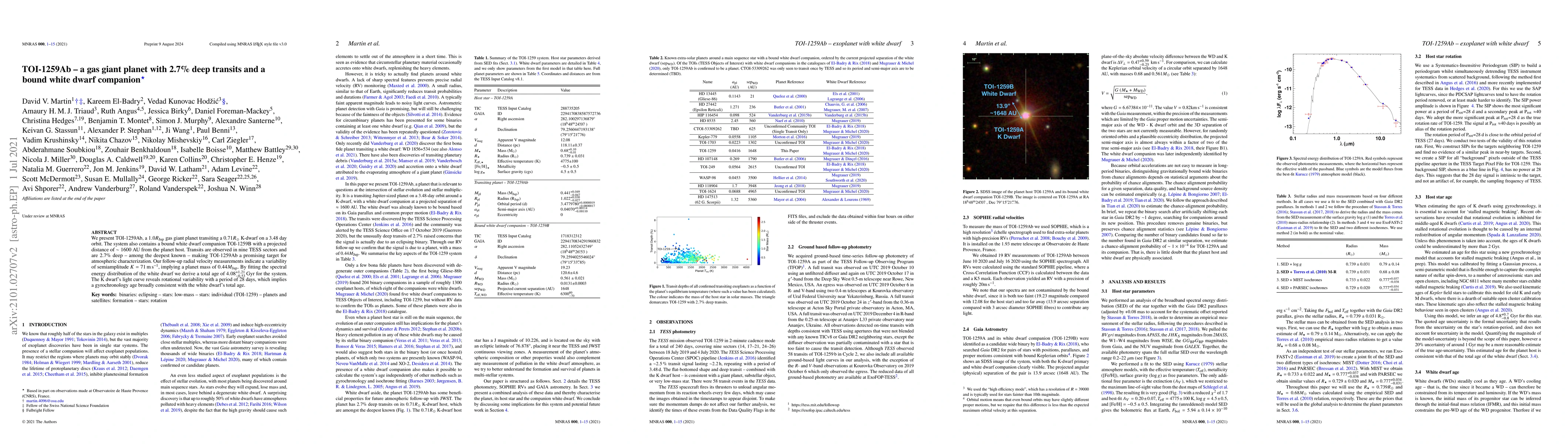 TOI-1259Ab is a 1.0 Rjup gas giant planet transiting a K-dwarf, accompanied by a distant white dwarf companion. Its deep 2.7% transits make it a prime candidate for atmospheric studies.