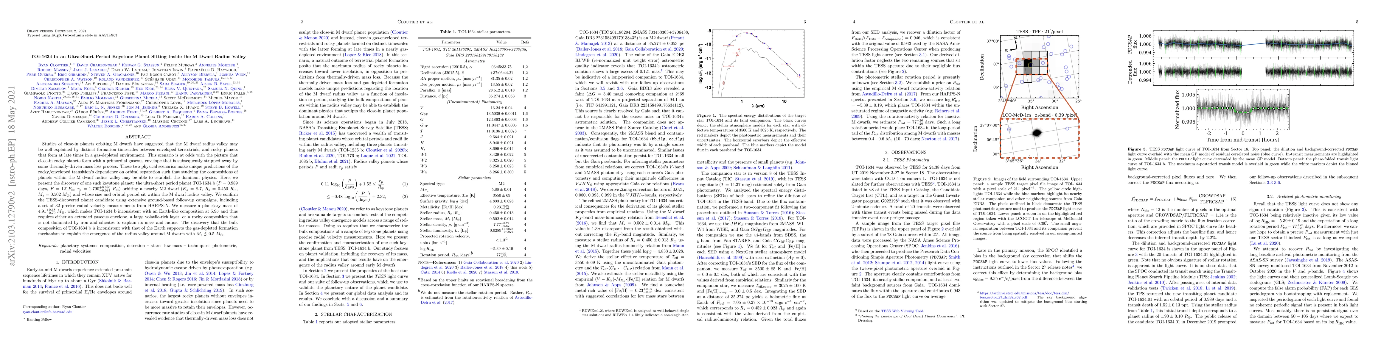 The paper reports the discovery of TOI-1634 b, an ultra-short period planet orbiting an M2 dwarf, which lies within the M dwarf radius valley. The planet's mass and radius suggest it does not have an Earth-like composition, supporting the gas-depleted formation mechanism for the M dwarf radius valley.