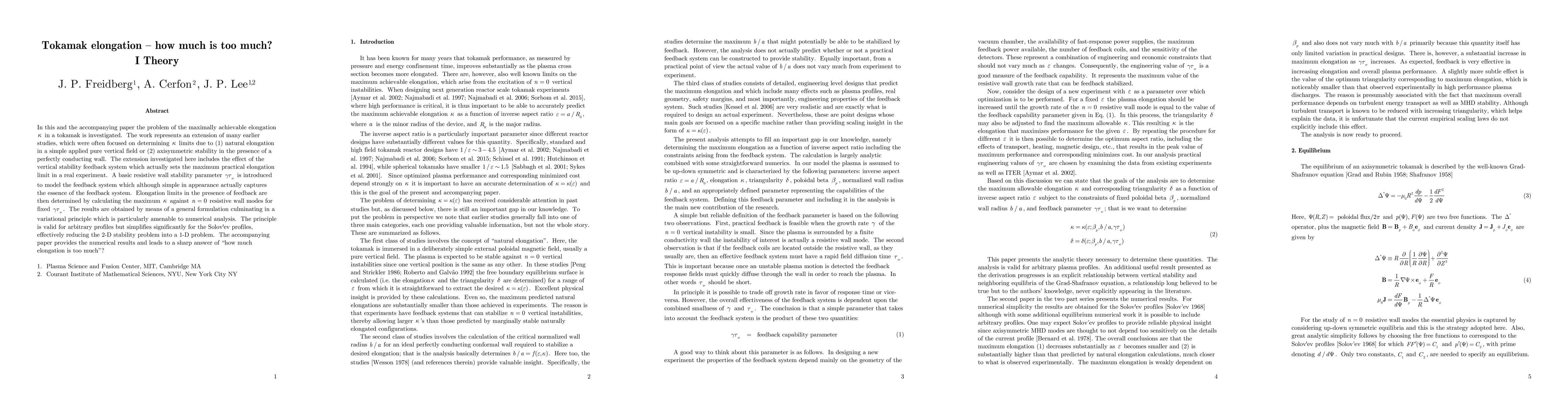 This paper investigates the limits of elongation in tokamaks, considering factors like feedback systems, and finds a sharp answer on how much elongation is too much.
