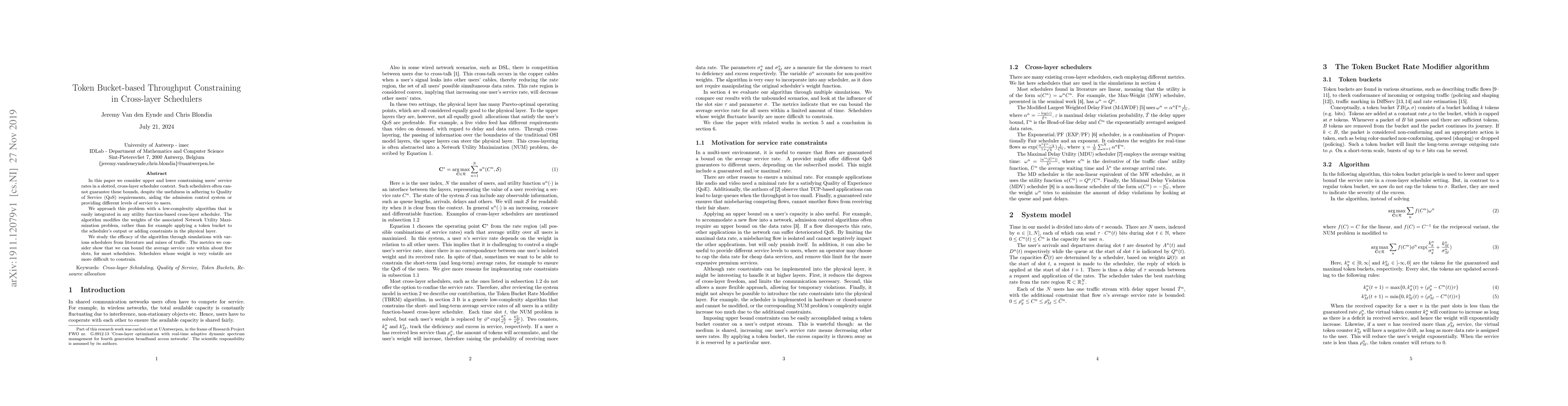 This paper proposes a low-complexity algorithm to constrain users' service rates in cross-layer schedulers, ensuring Quality of Service (QoS) requirements are met, and shows it can bound average service rate within about five slots for most schedulers.