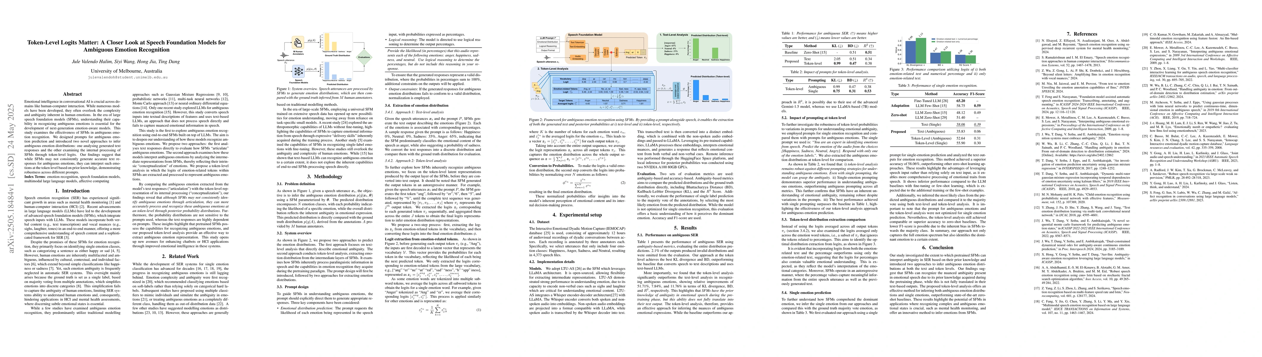 This work differentiates itself by focusing on the token-level processing of SFMs for ambiguous emotion recognition, revealing their robustness in interpreting such emotions despite inconsistent text response accuracy.