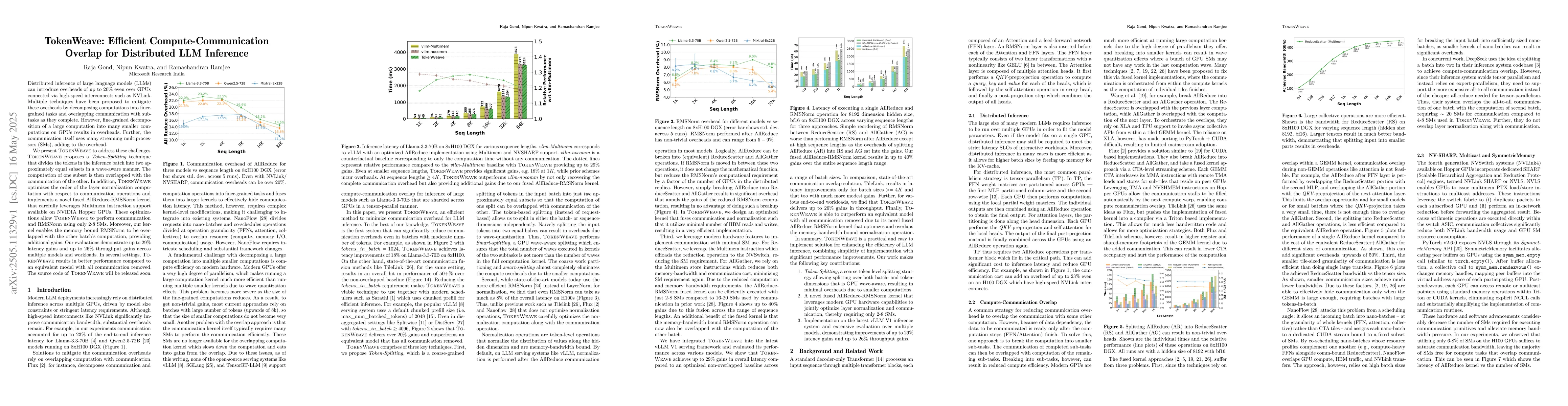 TokenWeave addresses the overheads in distributed inference of large language models, crucial for efficient deployment of LLMs on distributed GPU systems, with potential impact on AI and machine learning applications.