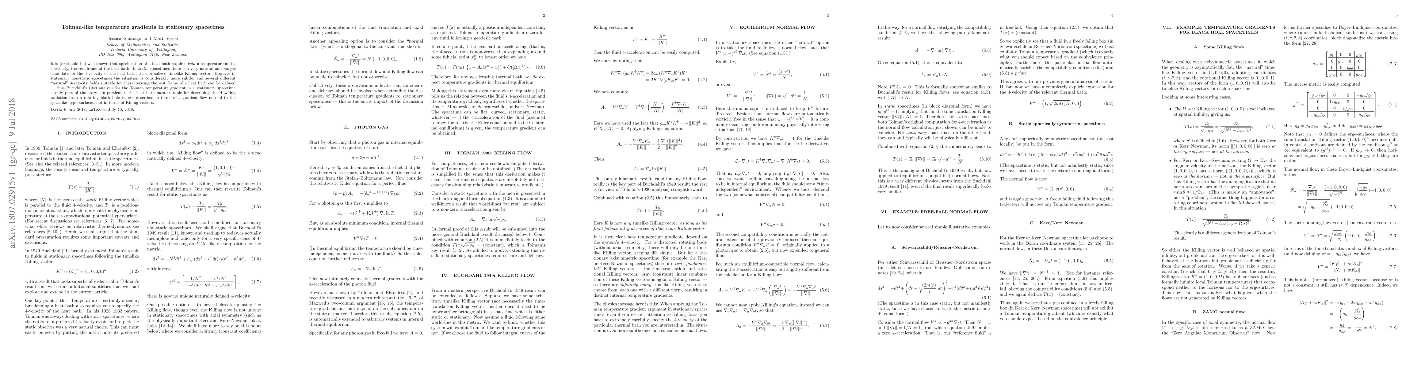 It is (or should be) well known that specification of a heat bath requires both a temperature and a 4-velocity, the rest frame of the heat bath. In static spacetimes there is a very natural and unique candidate for the 4-velocity of the heat bath, the normalized timelike Killing vector. However in stationary non-static spacetimes the situation is considerably more subtle, and several different "natural" 4-velocity fields suitable for characterizing the rest frame of a heat bath can be defined - thus Buchdahl's 1949 analysis for the Tolman temperature gradient in a stationary spacetime is only part of the story. In particular, the heat bath most suitable for describing the Hawking radiation from a rotating black hole is best described in terms of a gradient flow normal to the spacelike hypersurfaces, not in terms of Killing vectors.