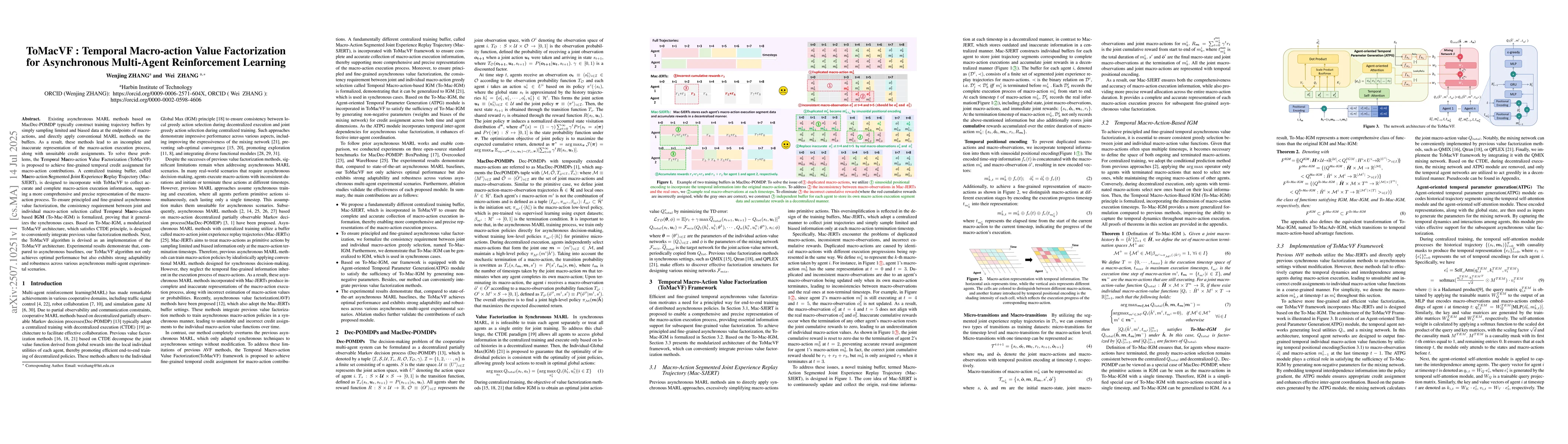 Existing asynchronous MARL methods based on MacDec-POMDP typically construct training trajectory buffers by simply sampling limited and biased data at the endpoints of macro-actions, and directly apply conventional MARL methods on the buffers. As a result, these methods lead to an incomplete and inaccurate representation of the macro-action execution process, along with unsuitable credit assignments. To solve these problems, the Temporal Macro-action Value Factorization (ToMacVF) is proposed to achieve fine-grained temporal credit assignment for macro-action contributions. A centralized training buffer, called Macro-action Segmented Joint Experience Replay Trajectory (Mac-SJERT), is designed to incorporate with ToMacVF to collect accurate and complete macro-action execution information, supporting a more comprehensive and precise representation of the macro-action process. To ensure principled and fine-grained asynchronous value factorization, the consistency requirement between joint and individual macro-action selection called Temporal Macro-action based IGM (To-Mac-IGM) is formalized, proving that it generalizes the synchronous cases. Based on To-Mac-IGM, a modularized ToMacVF architecture, which satisfies CTDE principle, is designed to conveniently integrate previous value factorization methods. Next, the ToMacVF algorithm is devised as an implementation of the ToMacVF architecture. Experimental results demonstrate that, compared to asynchronous baselines, our ToMacVF algorithm not only achieves optimal performance but also exhibits strong adaptability and robustness across various asynchronous multi-agent experimental scenarios.