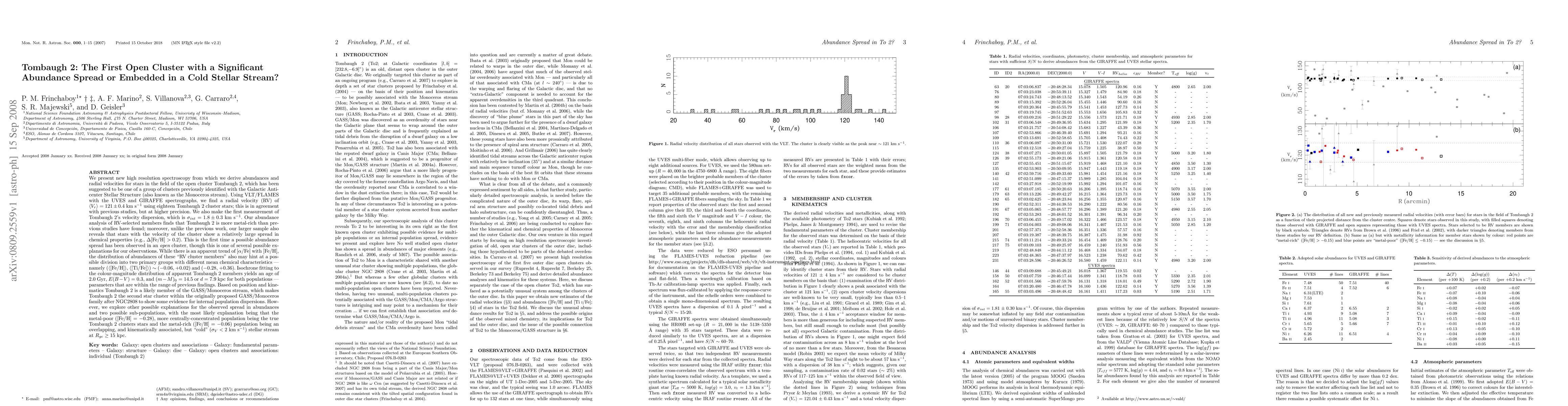 open cluster Tombaugh 2, which has been suggested to be associated with the