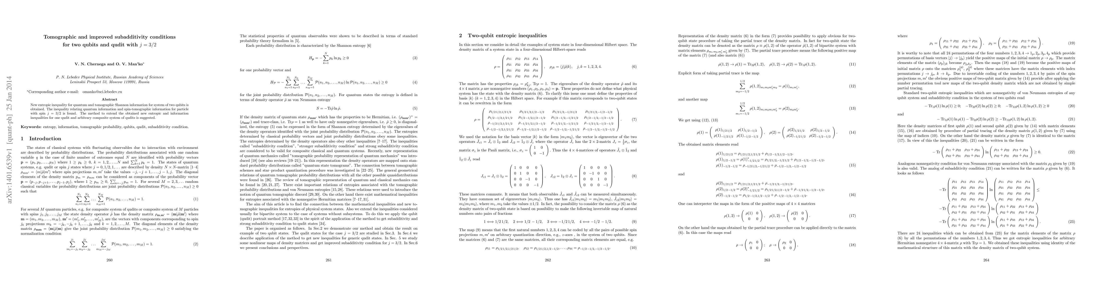 This paper presents a new entropic inequality for quantum and tomographic Shannon information in a system of two qubits and a particle with spin j = 3/2. It also proposes a method to extend these inequalities to qudits and arbitrary composite systems of qudits.