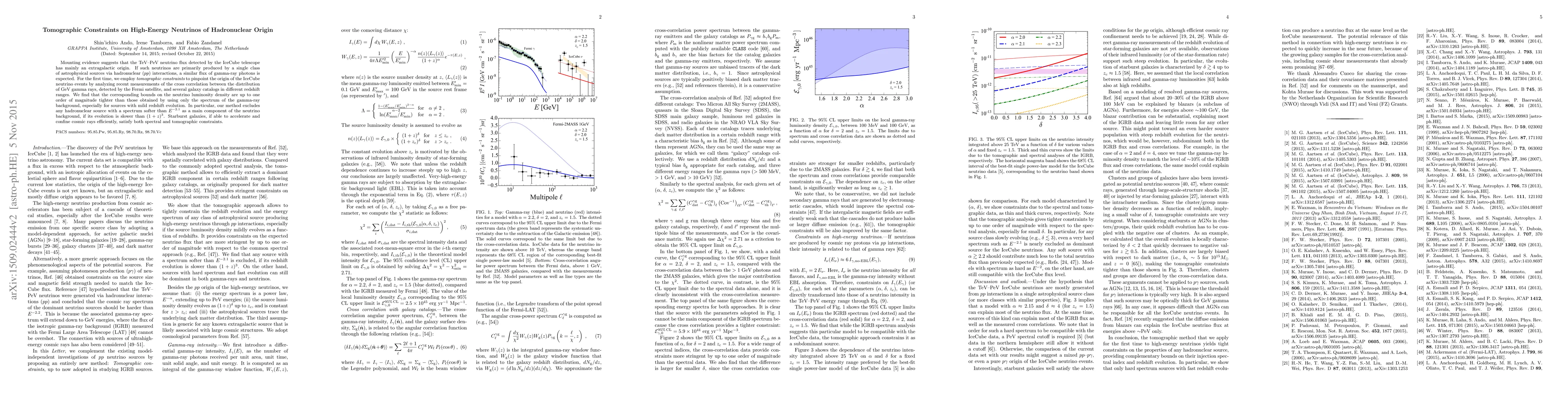 This research uses tomographic constraints to identify the origin of high-energy neutrinos detected by IceCube, finding tighter bounds on neutrino luminosity density compared to gamma-ray background spectrum alone. The study excludes softer neutrino sources and suggests starburst galaxies as potential candidates if they can efficiently accelerate cosmic rays.