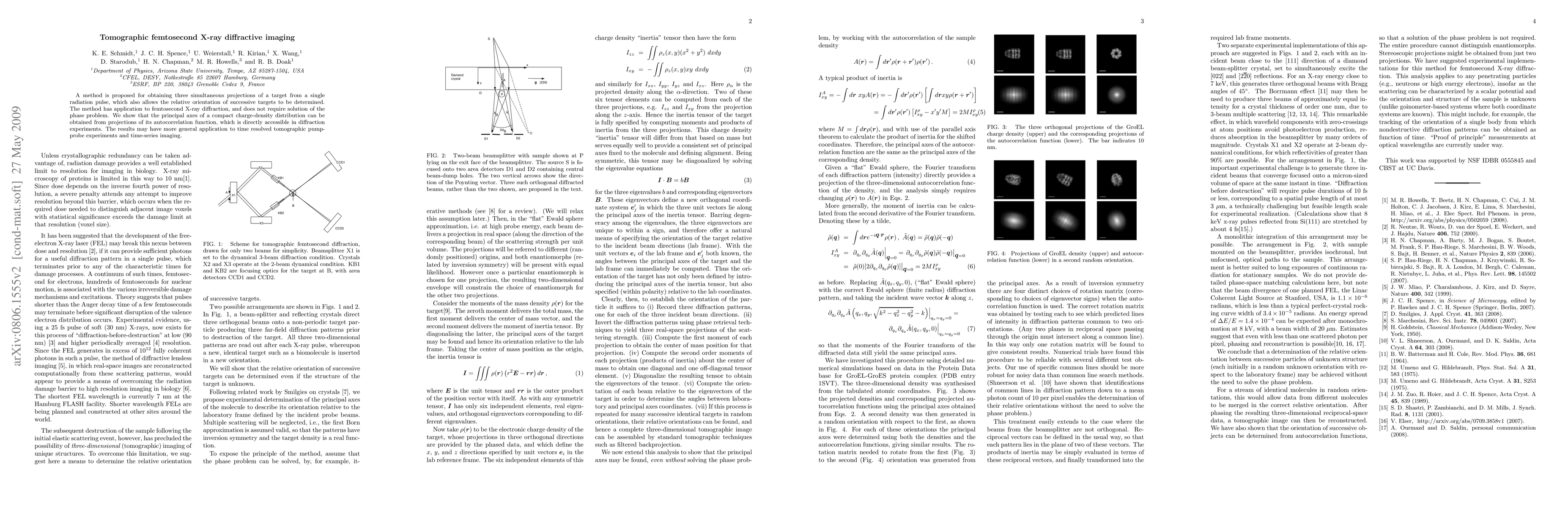 A method is proposed for obtaining three simultaneous projections of a target from a single radiation pulse, which also allows the relative orientation of successive targets to be determined. The method has application to femtosecond X-ray diffraction, and does not require solution of the phase problem. We show that the principle axes of a compact charge-density distribution can be obtained from projections of its autocorrelation function, which is directly accessible in diffraction experiments. The results may have more general application to time resolved tomographic pump-probe experiments and time-series imaging.