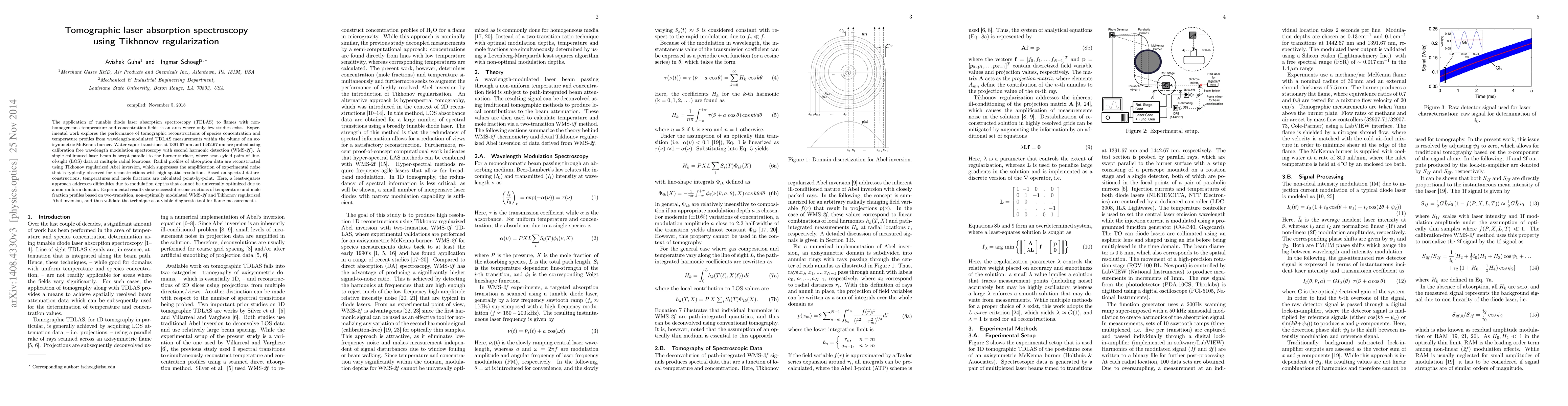 Researchers developed a technique for analyzing flames using laser absorption spectroscopy with Tikhonov regularization, successfully reconstructing temperature and concentration profiles from wavelength-modulated measurements.