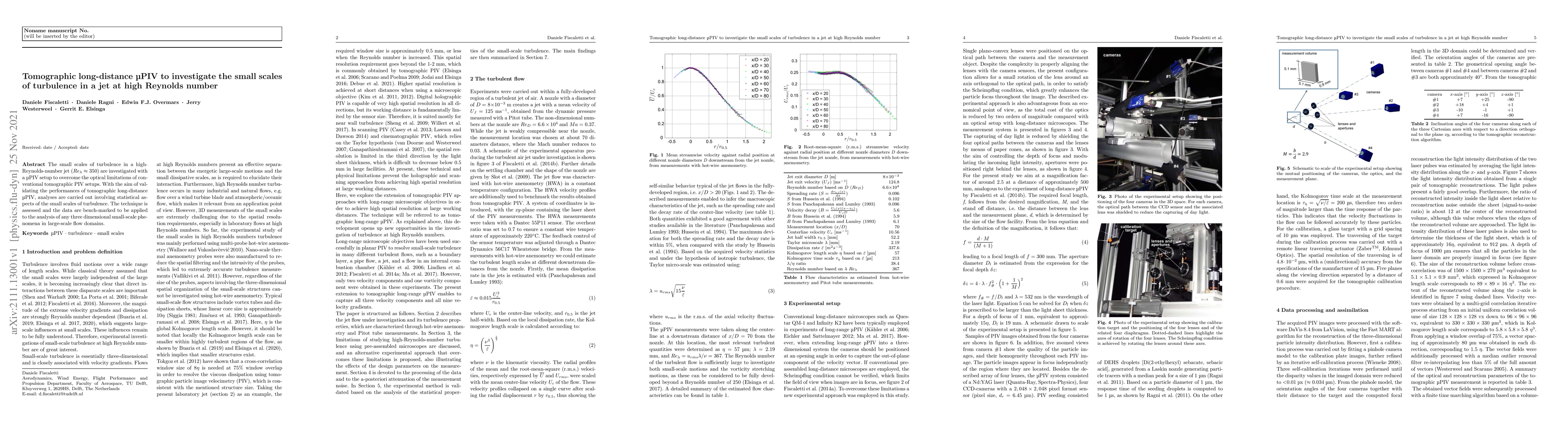 The small scales of turbulence in a high-Reynolds-number jet ($Re_{\lambda} \approx 350$) are investigated with a \textmu PIV setup to overcome the optical limitations of conventional tomographic PIV setups. With the aim of validating the performances of tomographic long-distance \textmu PIV, analyses are carried out involving statistical aspects of the small scales of turbulence. The technique is assessed and the data are bench-marked to be applied to the analysis of any three dimensional small-scale phenomena in large-scale flow domains.