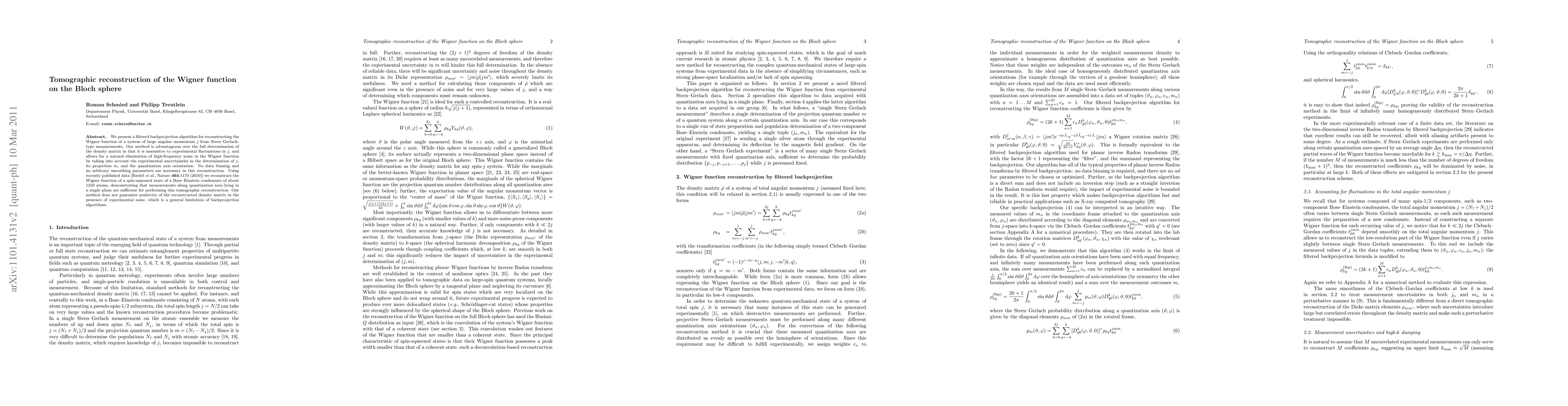 We present a filtered backprojection algorithm for reconstructing the Wigner function of a system of large angular momentum j from Stern-Gerlach-type measurements. Our method is advantageous over the full determination of the density matrix in that it is insensitive to experimental fluctuations in j, and allows for a natural elimination of high-frequency noise in the Wigner function by taking into account the experimental uncertainties in the determination of j, its projection m, and the quantization axis orientation. No data binning and no arbitrary smoothing parameters are necessary in this reconstruction. Using recently published data [Riedel et al., Nature 464:1170 (2010)] we reconstruct the Wigner function of a spin-squeezed state of a Bose-Einstein condensate of about 1250 atoms, demonstrating that measurements along quantization axes lying in a single plane are sufficient for performing this tomographic reconstruction. Our method does not guarantee positivity of the reconstructed density matrix in the presence of experimental noise, which is a general limitation of backprojection algorithms.