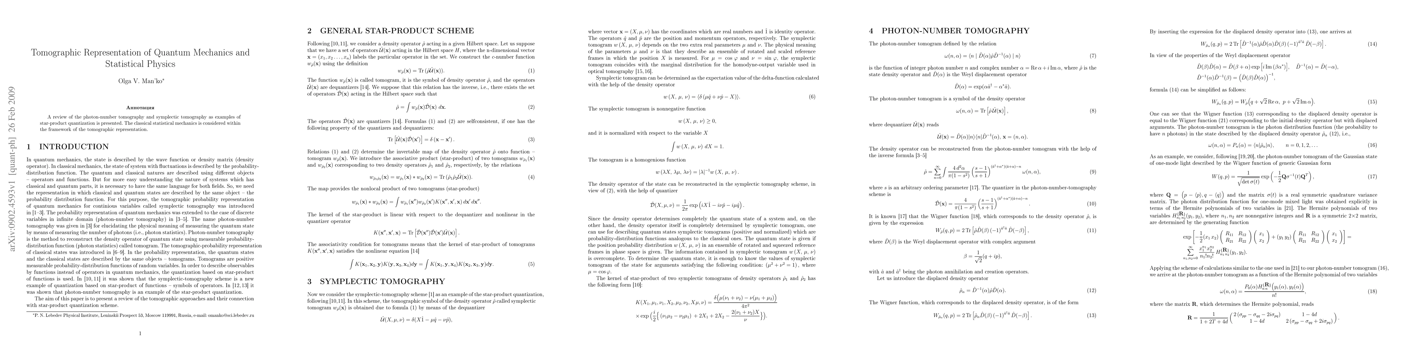 A review of the photon-number tomography and symplectic tomography as examples of star-product quantization is presented. The classical statistical mechanics is considered within the framework of the tomographic representation.