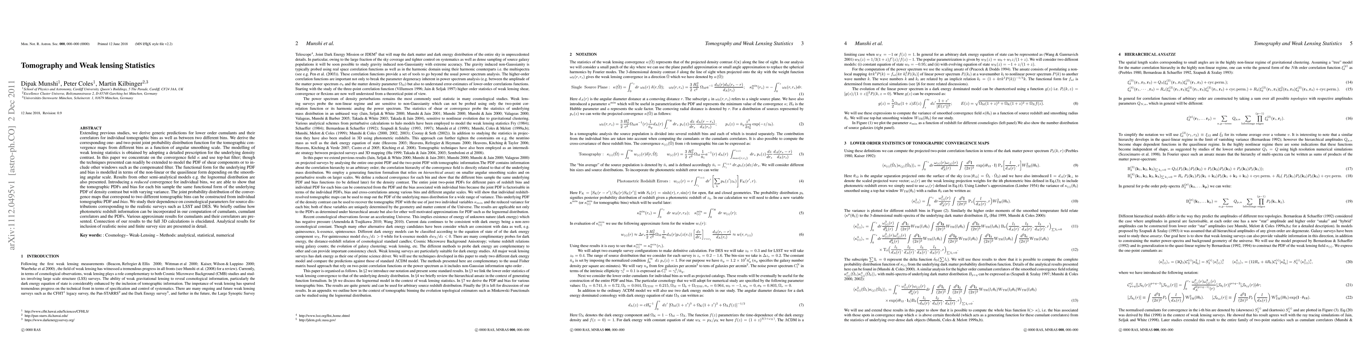 Extending previous studies, we derive generic predictions for lower order cumulants and their correlators for individual tomographic bins as well as between two different bins. We derive the corresponding one- and two-point joint probability distribution function for the tomographic convergence maps from different bins as a function of angular smoothing scale. The modelling of weak lensing statistics is obtained by adopting a detailed prescription for the underlying density contrast. In this paper we concentrate on the convergence field $\kappa$ and use top-hat filter; though the techniques presented can readily be extended to model the PDF of shear components or to include other windows such as the compensated filter. The functional form for the underlying PDF and bias is modelled in terms of the non-linear or the quasilinear form depending on the smoothing angular scale. Results from other semi-analytical models e.g. the lognormal distribution are also presented. Introducing a reduced convergence for individual bins, we are able to show that the tomographic PDFs and bias for each bin sample the same functional form of the underlying PDF of density contrast but with varying variance. The joint probability distribution of the convergence maps that correspond to two different tomographic bins can be constructed from individual tomographic PDF and bias. We study their dependence on cosmological parameters for source distributions corresponding to the realistic surveys such as LSST and DES. We briefly outline how photometric redshift information can be incorporated in our computation of cumulants, cumulant correlators and the PDFs. Connection of our results to the full 3D calculations is elucidated. Analytical results for inclusion of realistic noise and finite survey size are presented in detail.
