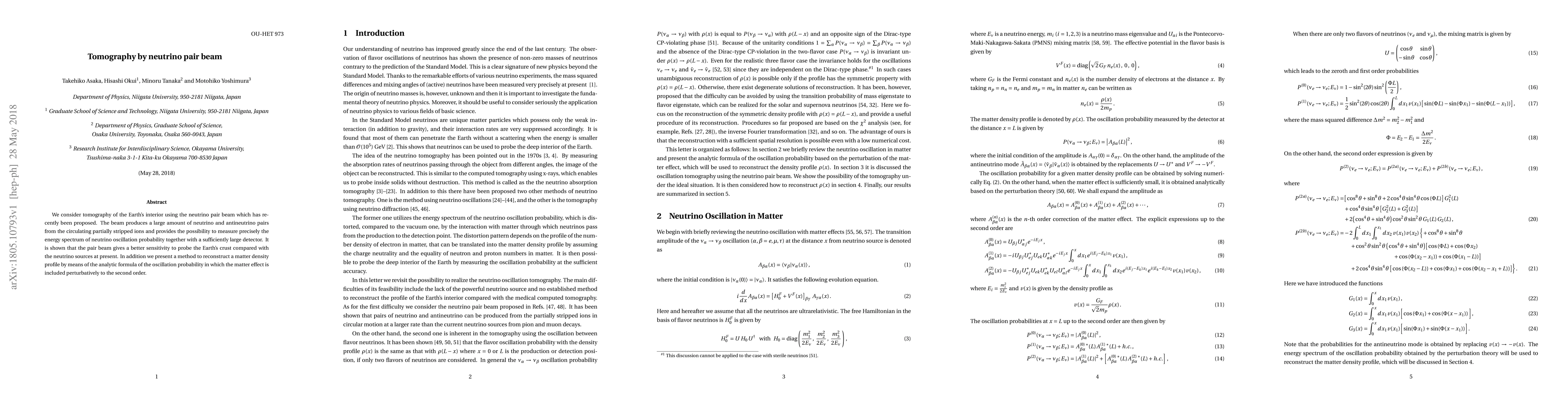 We consider tomography of the Earth's interior using the neutrino pair beam which has recently been proposed. The beam produces a large amount of neutrino and antineutrino pairs from the circulating partially stripped ions and provides the possibility to measure precisely the energy spectrum of neutrino oscillation probability together with a sufficiently large detector. It is shown that the pair beam gives a better sensitivity to probe the Earth's crust compared with the neutrino sources at present. In addition we present a method to reconstruct a matter density profile by means of the analytic formula of the oscillation probability in which the matter effect is included perturbatively to the second order.