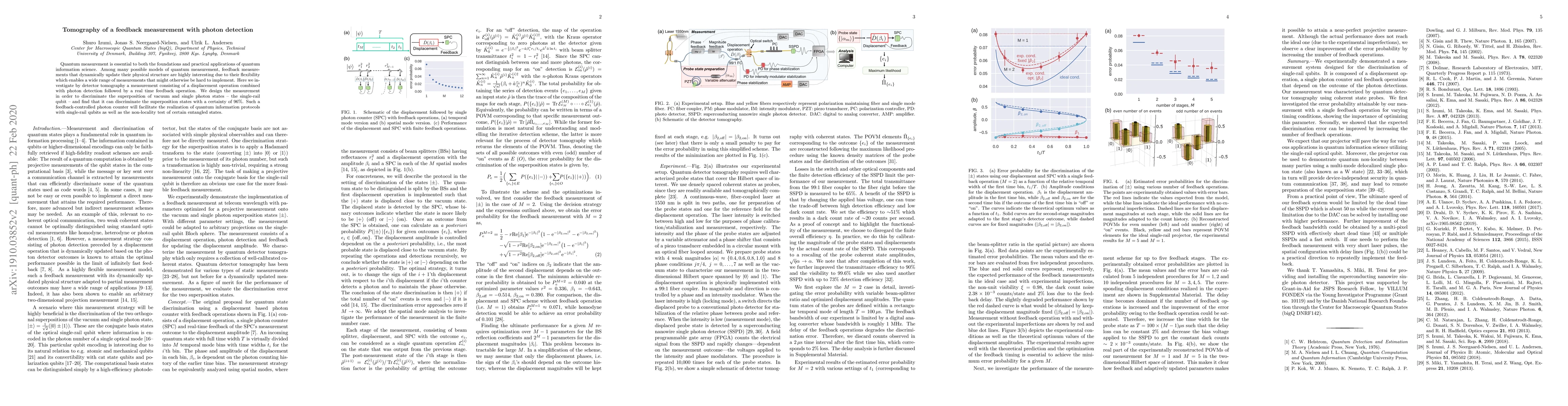 Quantum measurement is essential to both the foundations and practical applications of quantum information science. Among many possible models of quantum measurement, feedback measurements that dynamically update their physical structure are highly interesting due to their flexibility which enables a wide range of measurements that might otherwise be hard to implement. Here we investigate by detector tomography a measurement consisting of a displacement operation combined with photon detection followed by a real time feedback operation. We design the measurement in order to discriminate the superposition of vacuum and single photon states -- the single-rail qubit -- and find that it can discriminate the superposition states with a certainty of 96\%. Such a feedback-controlled photon counter will facilitate the realization of quantum information protocols with single-rail qubits as well as the non-locality test of certain entangled states.