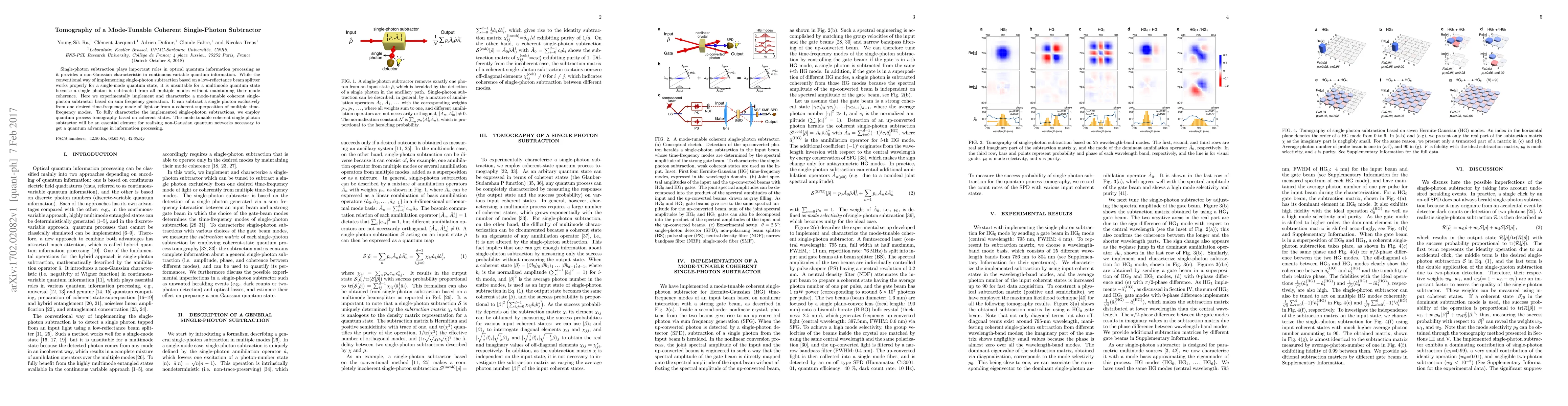 This paper presents an experimental implementation of a mode-tunable coherent single-photon subtractor based on sum frequency generation, capable of subtracting a single photon from a specific time-frequency mode while preserving mode coherence. The device is fully characterized using quantum process tomography based on coherent states.