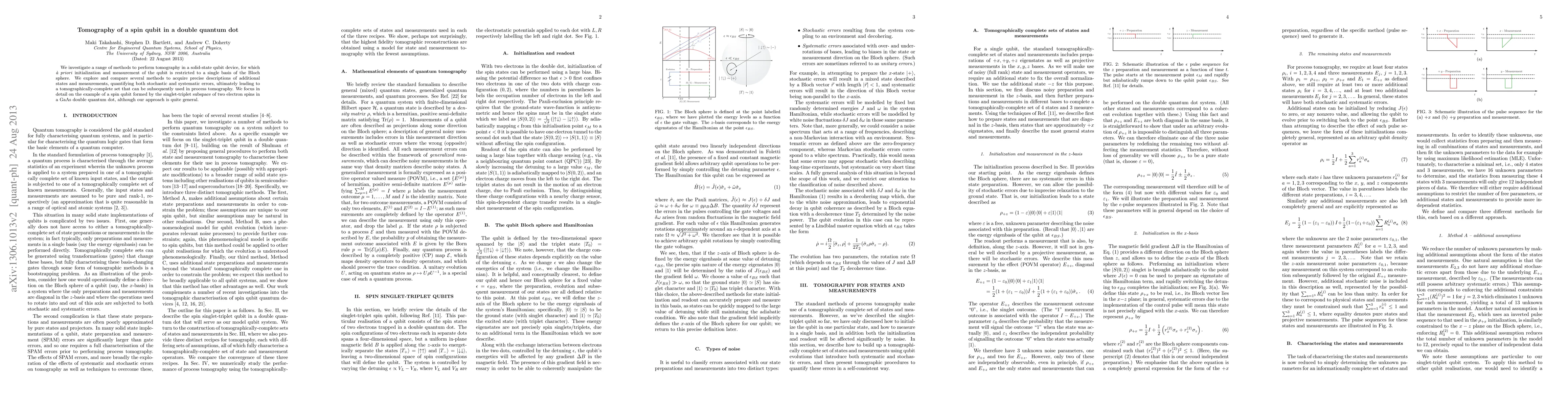 We investigate a range of methods to perform tomography in a solid-state qubit device, for which a priori initialization and measurement of the qubit is restricted to a single basis of the Bloch sphere. We explore and compare several methods to acquire precise descriptions of additional states and measurements, quantifying both stochastic and systematic errors, ultimately leading to a tomographically-complete set that can be subsequently used in process tomography. We focus in detail on the example of a spin qubit formed by the singlet-triplet subspace of two electron spins in a GaAs double quantum dot, although our approach is quite general.