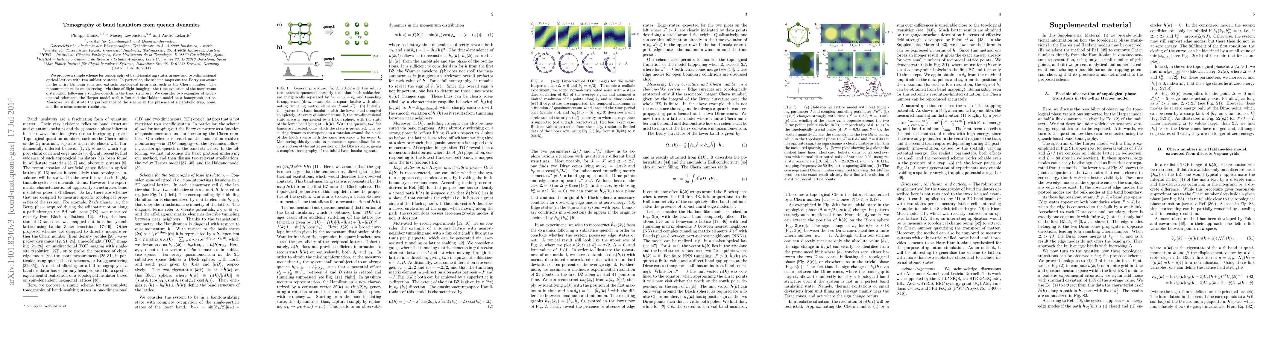 We propose a simple scheme for tomography of band-insulating states in one- and two-dimensional optical lattices with two sublattice states. In particular, the scheme maps out the Berry curvature in the entire Brillouin zone and extracts topological invariants such as the Chern number. The measurement relies on observing---via time-of-flight imaging---the time evolution of the momentum distribution following a sudden quench in the band structure. We consider two examples of experimental relevance: the Harper model with $\pi$-flux and the Haldane model on a honeycomb lattice. Moreover, we illustrate the performance of the scheme in the presence of a parabolic trap, noise, and finite measurement resolution.