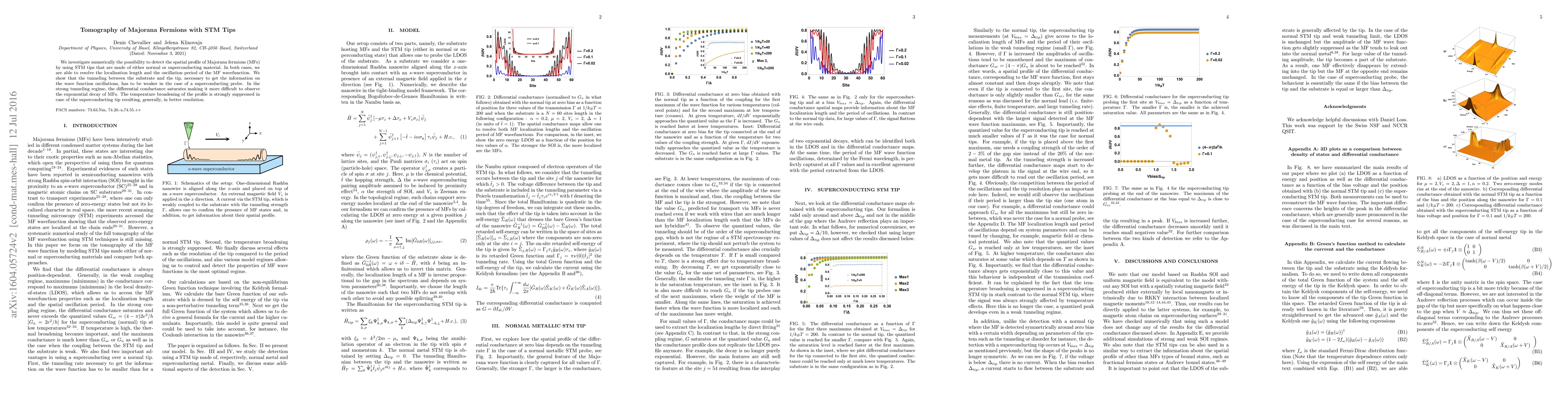 This paper investigates the detection of Majorana fermions' spatial profiles using scanning tunneling microscopy (STM) tips, finding that superconducting tips provide better resolution due to reduced temperature broadening and more pronounced wave function oscillations. The study highlights the necessity for lower tunneling in superconducting tips to observe the MFs' exponential decay.