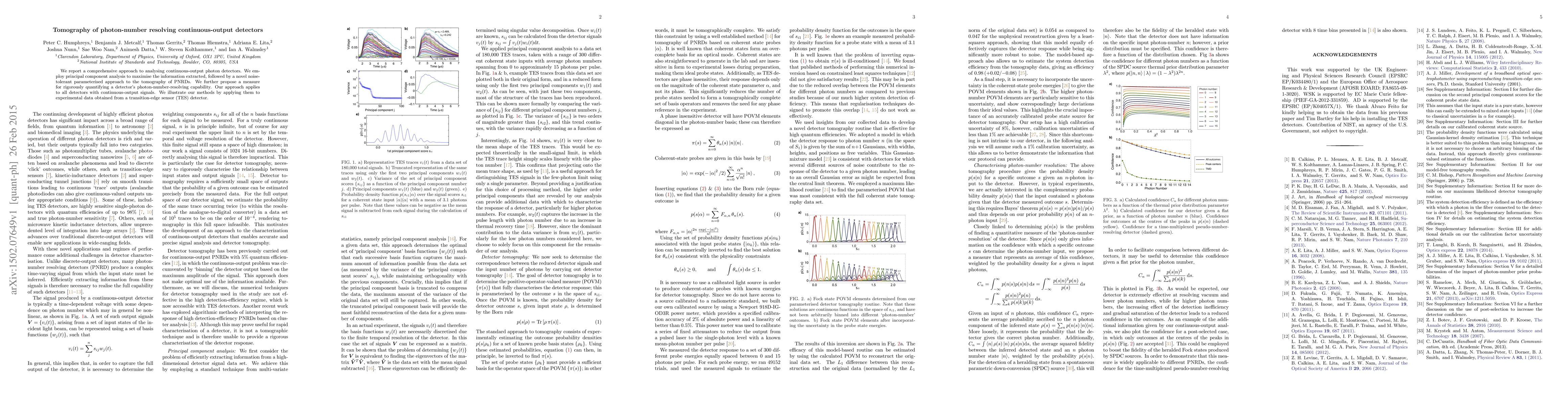 We report a comprehensive approach to analysing continuous-output photon detectors. We employ principal component analysis to maximise the information extracted, followed by a novel noise-tolerant parameterised approach to the tomography of PNRDs. We further propose a measure for rigorously quantifying a detector's photon-number-resolving capability. Our approach applies to all detectors with continuous-output signals. We illustrate our methods by applying them to experimental data obtained from a transition-edge sensor (TES) detector.