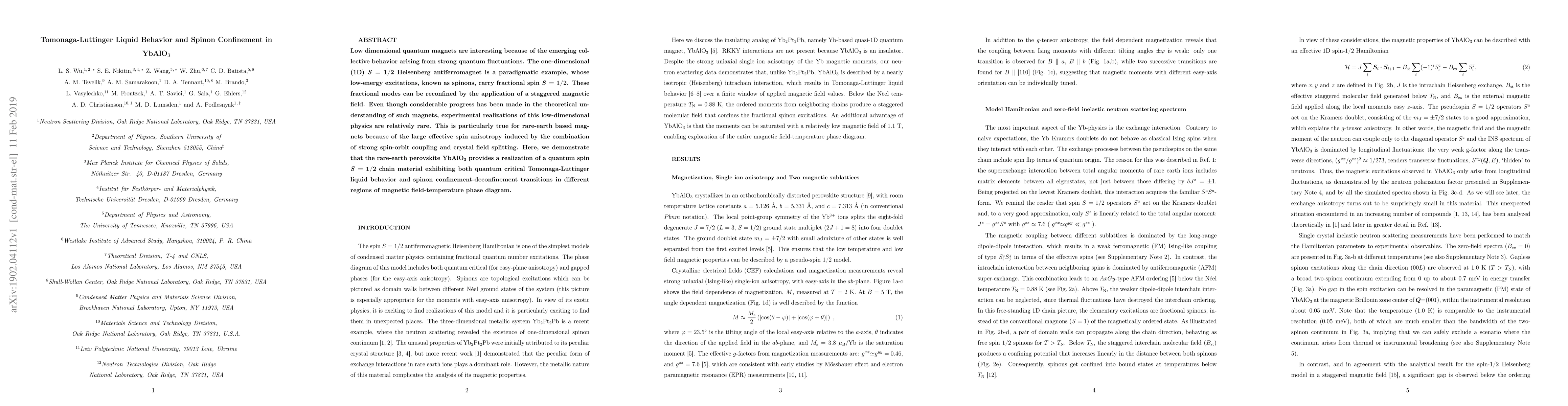 This paper investigates the quantum spin S = 1/2 chain material YbAlO$_3$, demonstrating its behavior as a Tomonaga-Luttinger liquid and showing spinon confinement-deconfinement transitions under varying magnetic fields and temperatures.