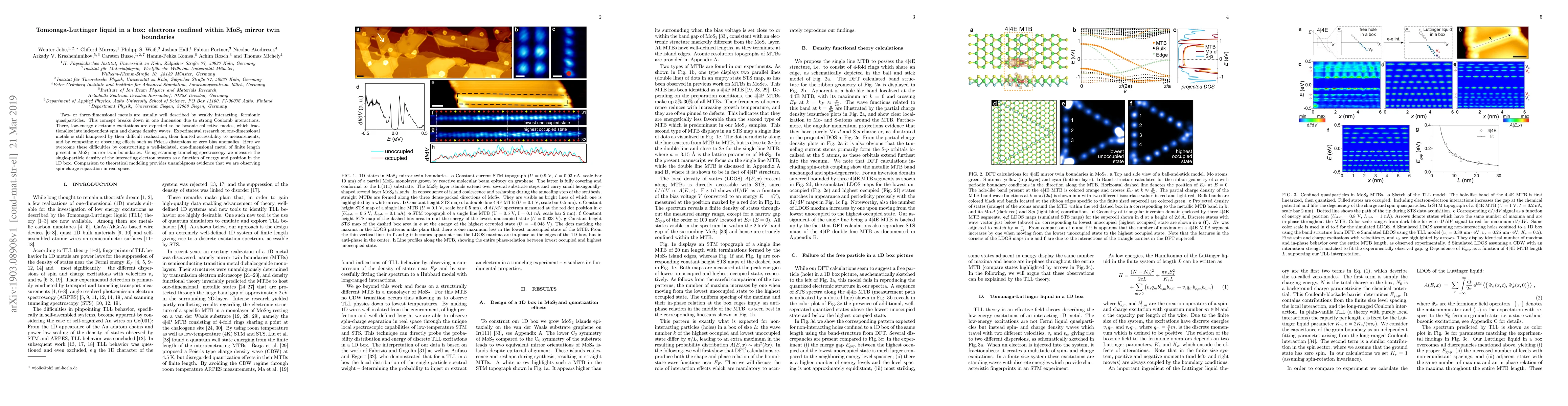 This paper investigates a one-dimensional metal formed within MoS$_2$ mirror twin boundaries, demonstrating spin-charge separation characteristic of Tomonaga-Luttinger liquids. Using scanning tunneling spectroscopy, the authors provide experimental evidence for the bosonic collective modes predicted in strongly interacting, one-dimensional electron systems.