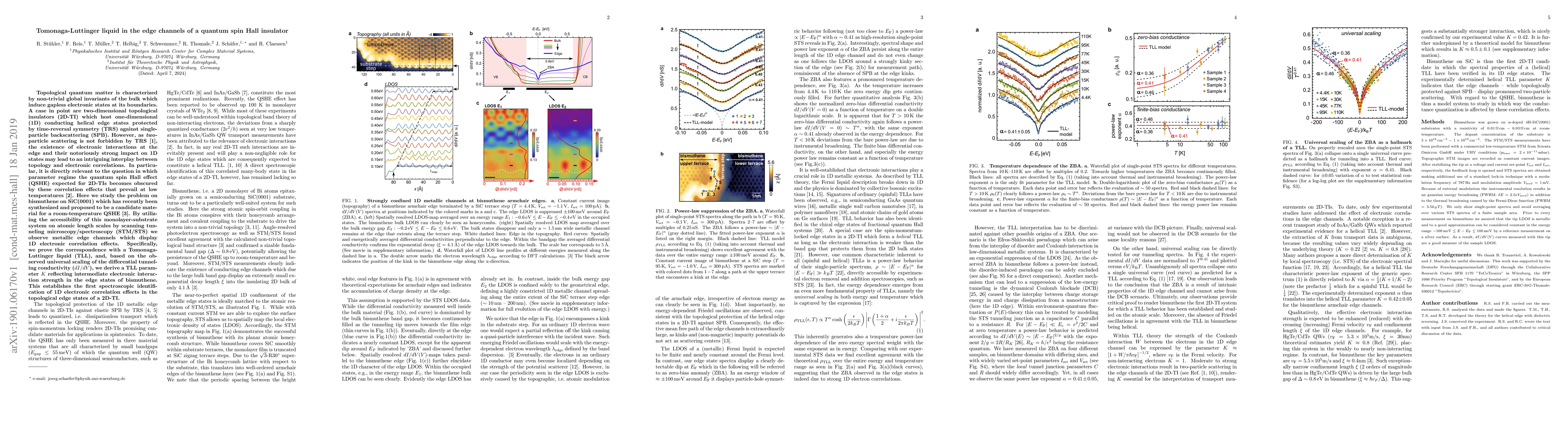 Topological quantum matter is characterized by non-trivial global invariants of the bulk which induce gapless electronic states at its boundaries. A case in point are two-dimensional topological insulators (2D-TI) which host one-dimensional (1D) conducting helical edge states protected by time-reversal symmetry (TRS) against single-particle backscattering (SPB). However, as two-particle scattering is not forbidden by TRS [1], the existence of electronic interactions at the edge and their notoriously strong impact on 1D states may lead to an intriguing interplay between topology and electronic correlations. In particular, it is directly relevant to the question in which parameter regime the quantum spin Hall effect (QSHE) expected for 2D-TIs becomes obscured by these correlation effects that prevail at low temperatures [2]. Here we study the problem on bismuthene on SiC(0001) which has recently been synthesized and proposed to be a candidate material for a room-temperature QSHE [3]. By utilizing the accessibility of this monolayer-substrate system on atomic length scales by scanning tunneling microscopy/spectroscopy (STM/STS) we observe metallic edge channels which display 1D electronic correlation effects. Specifically, we prove the correspondence with a Tomonaga-Luttinger liquid (TLL), and, based on the observed universal scaling of the differential tunneling conductivity (dI/dV), we derive a TLL parameter K reflecting intermediate electronic interaction strength in the edge states of bismuthene. This establishes the first spectroscopic identification of 1D electronic correlation effects in the topological edge states of a 2D-TI.