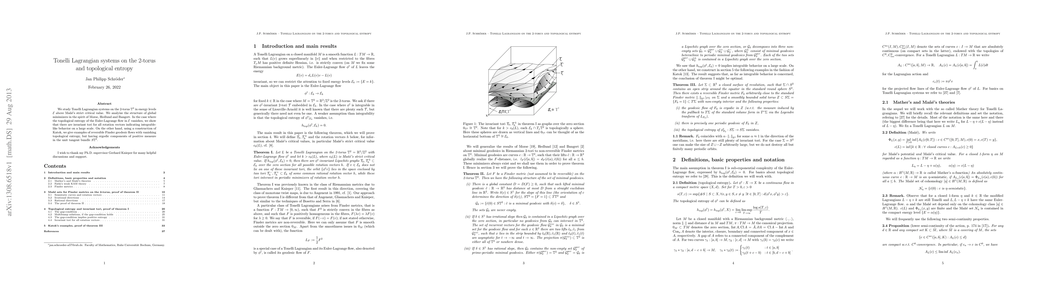 This research is significant as it contributes to understanding the dynamics of Tonelli Lagrangian systems, which have applications in Hamiltonian mechanics and geometric control theory. The findings offer a deeper insight into the relationship between topological entropy and the integrability of dynamical systems.