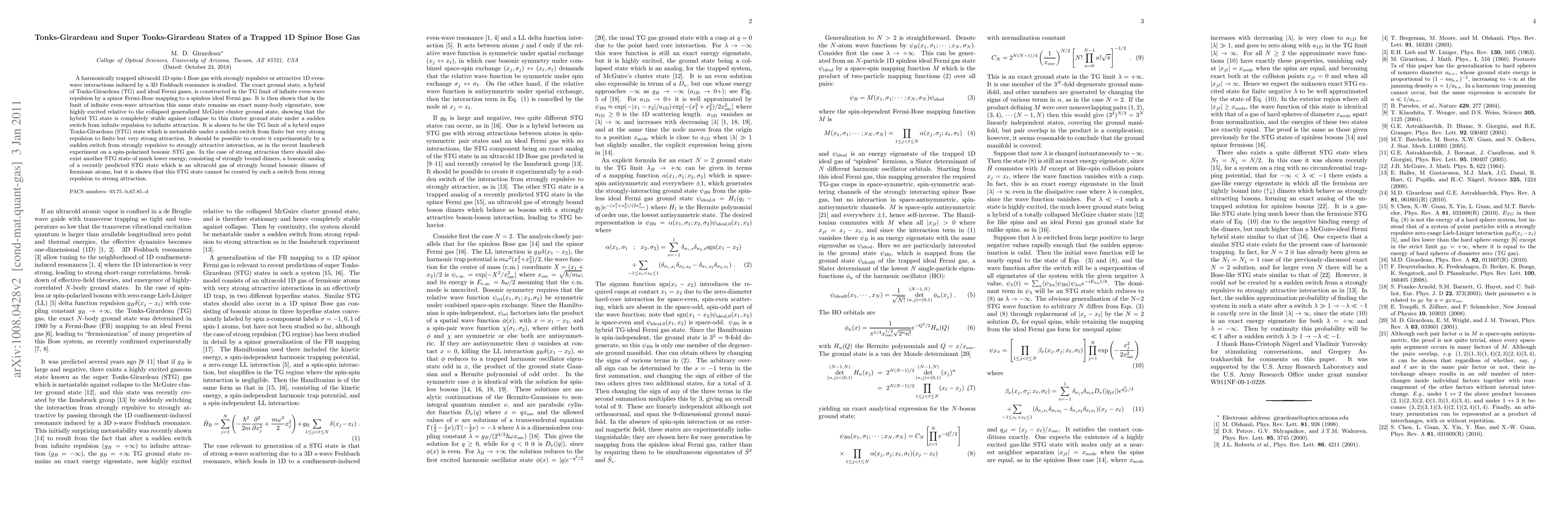 A harmonically trapped ultracold 1D spin-1 Bose gas with strongly repulsive or attractive 1D even-wave interactions induced by a 3D Feshbach resonance is studied. The exact ground state, a hybrid of Tonks-Girardeau (TG) and ideal Fermi gases, is constructed in the TG limit of infinite even-wave repulsion by a spinor Fermi-Bose mapping to a spinless ideal Fermi gas. It is then shown that in the limit of infinite even-wave attraction this same state remains an exact many-body eigenstate, now highly excited relative to the collapsed generalized McGuire cluster ground state, showing that the hybrid TG state is completely stable against collapse to this cluster ground state under a sudden switch from infinite repulsion to infinite attraction. It is shown to be the TG limit of a hybrid super Tonks-Girardeau (STG) state which is metastable under a sudden switch from finite but very strong repulsion to finite but very strong attraction. It should be possible to create it experimentally by a sudden switch from strongly repulsive to strongly attractive interaction, as in the recent Innsbruck experiment on a spin-polarized bosonic STG gas. In the case of strong attraction there should also exist another STG state of much lower energy, consisting of strongly bound dimers, a bosonic analog of a recently predicted STG gas which is an ultracold gas of strongly bound bosonic dimers of fermionic atoms, but it is shown that this STG state cannot be created by such a switch from strong repulsion to strong attraction.