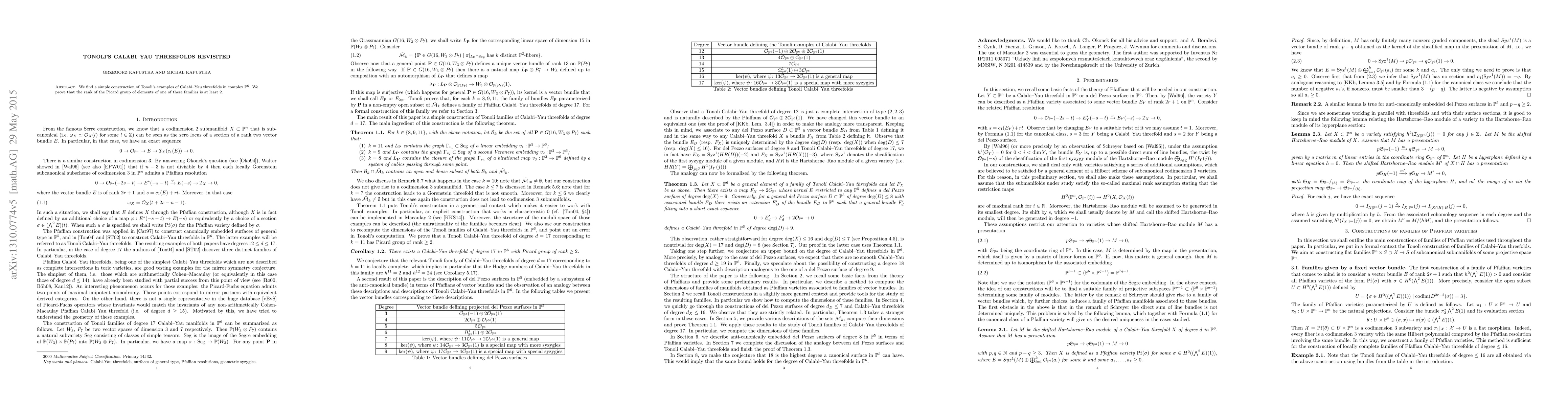 Summary: This paper provides a straightforward geometric construction for Tonoli's Calabi-Yau threefolds of degree 17 in complex projective space, and demonstrates that the Picard group rank for these examples is at least 2.